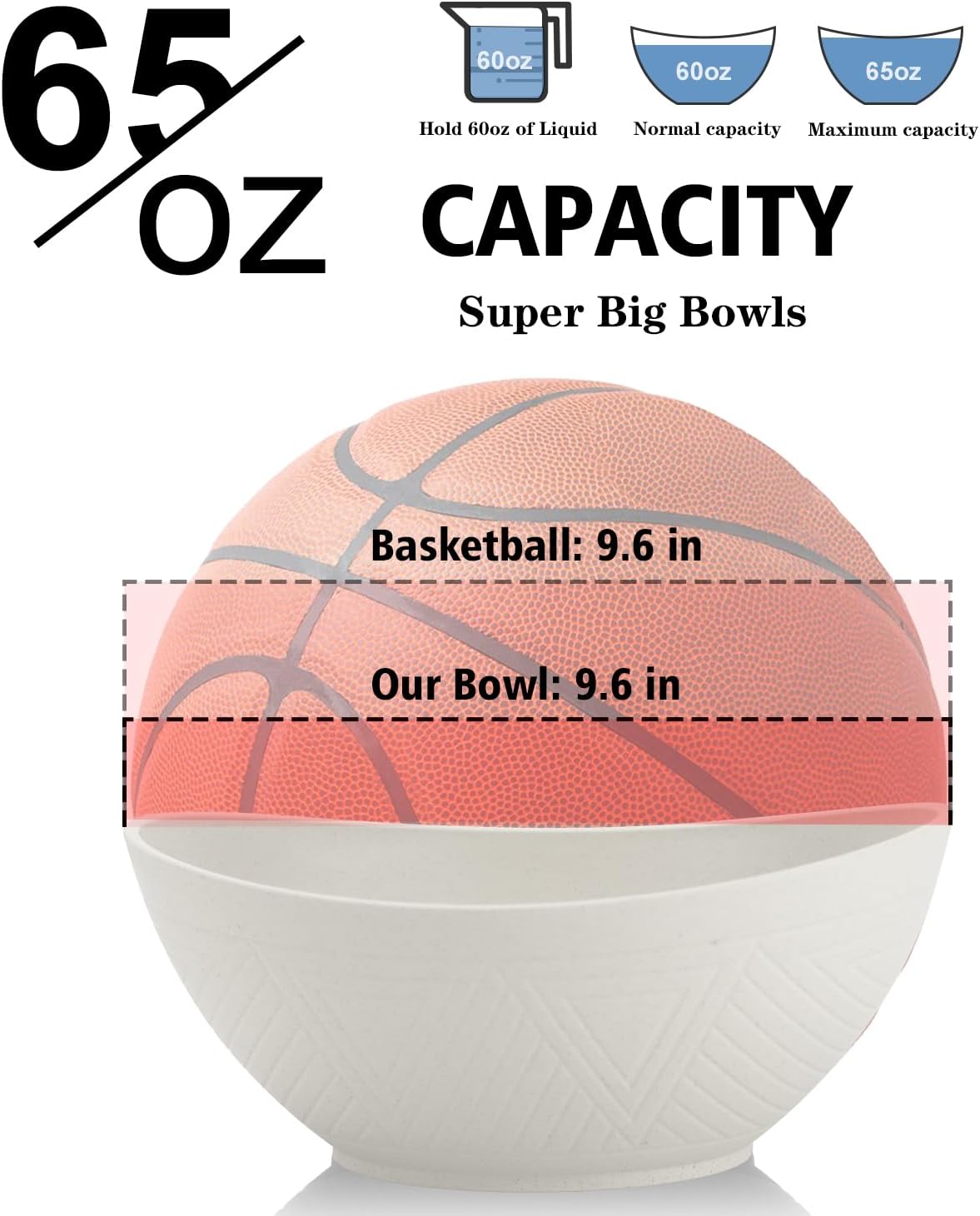 65oz Large Salad Bowls Ivory - Wheat Straw Salad bowls Set of 4 - Unbreakable Salad Bowls Dishware & Microwave Safe - BPA Free Bowls for kitchen,camping