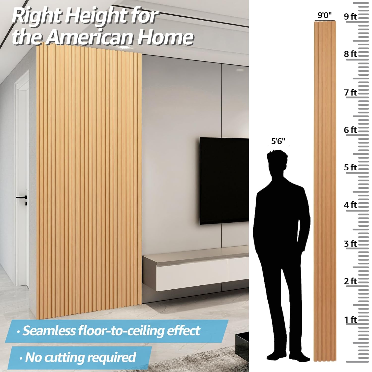 Art3d WPC Slat Wall Panels, 8-Pack 108 x 6 Inch 3D Wall Accents for Interior Wall Decor, Living Room, Bedroom, Boxwood