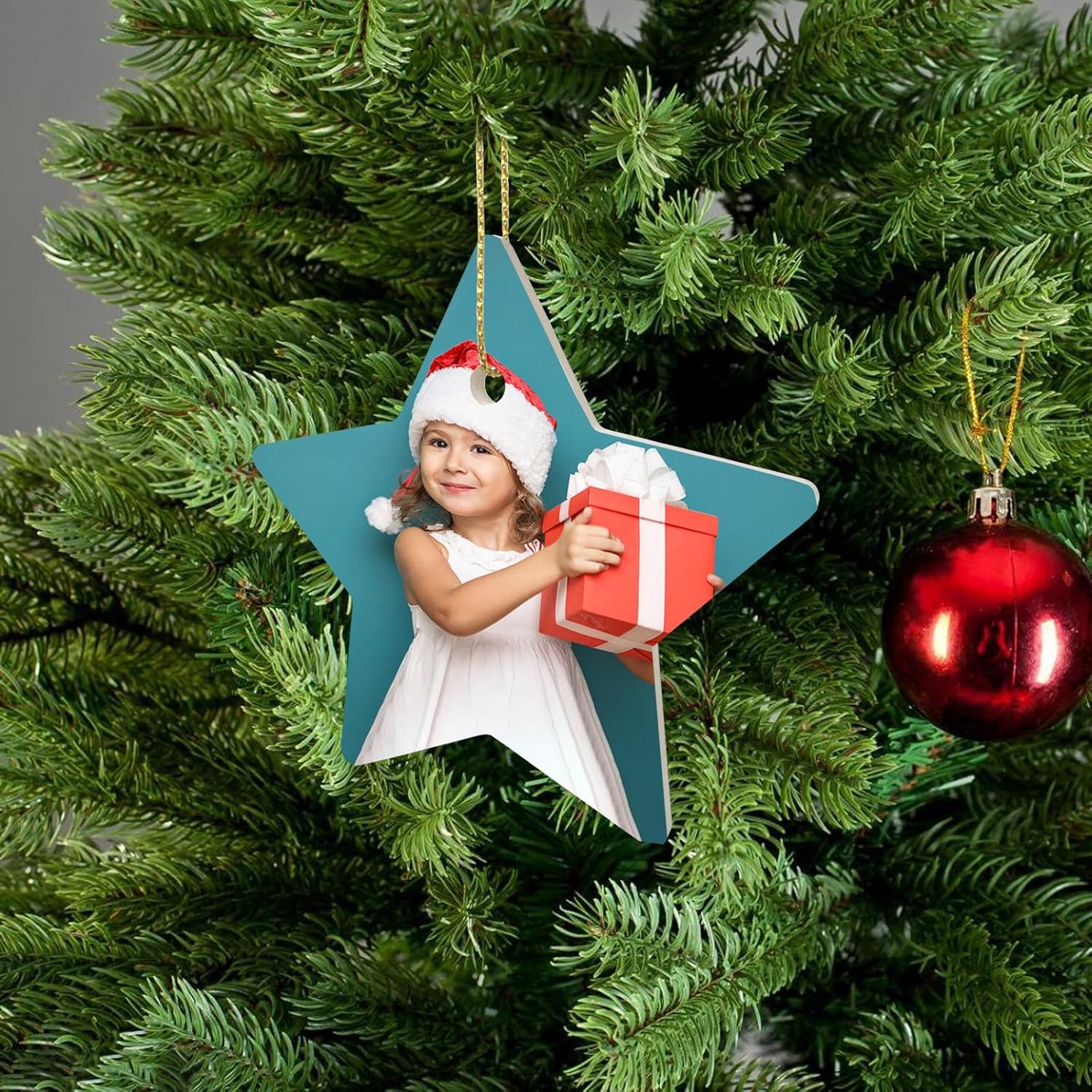 - 🎅VARIOUS SHAPE OPTIONS:🎄Personalized photo ornaments 2025 has 3 shapes for you to choose from,Round,Star and Heart.Imagine seeing photos of your loved ones hanging from the branches of your Christmas tree.What a surprise that would be.Customized Christmas photo ornament is the best home decoration to hang on the Christmas tree