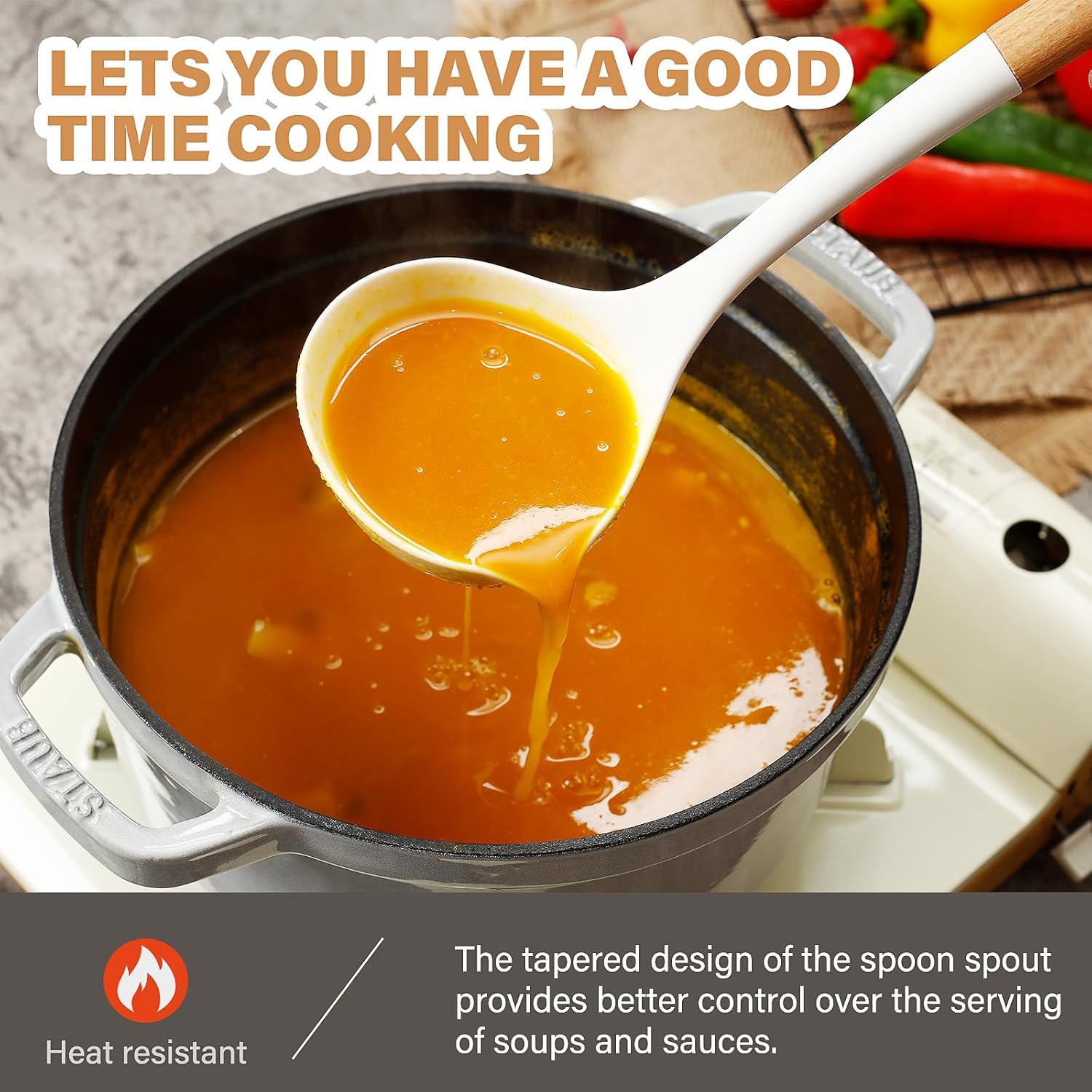 - HEAT RESISTANT, GREAT FOR NON-STICK PANS: Our utensil sets can handle temps up to 446°F without melting. The soft silicone won't scratch non-stick surfaces. The handles are firmly attached. They're durable, making cooking easier and helping your cookware last longer