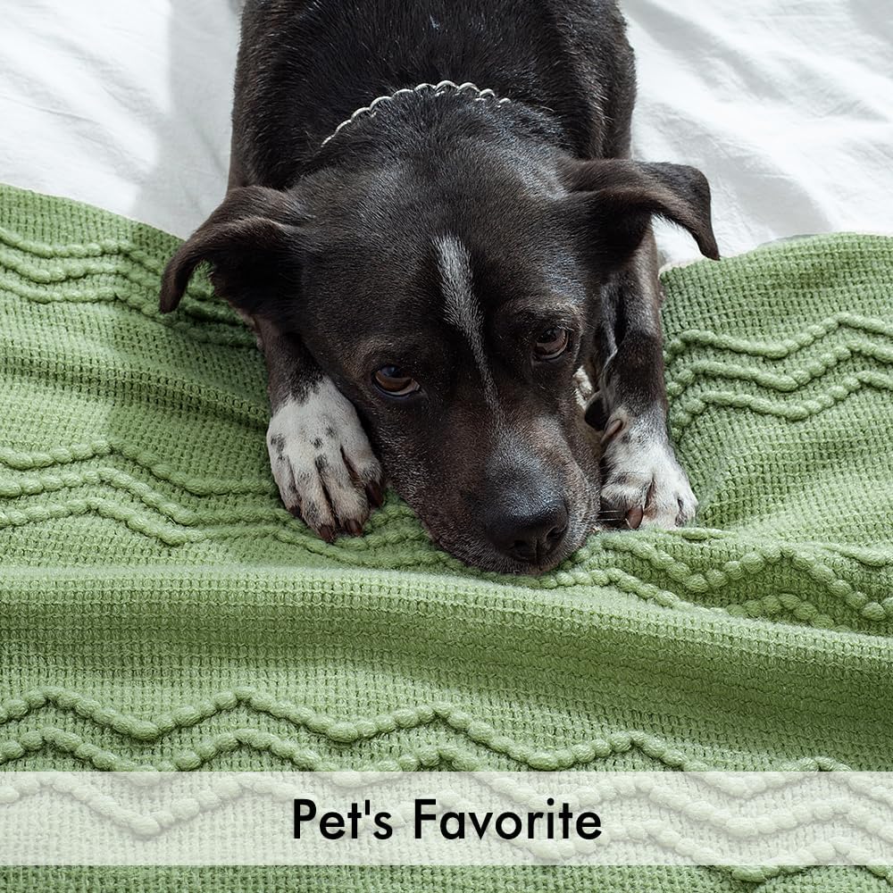 MIULEE Sage Green Knitted Throw Blanket for Couch Textured Spring Knit Blanket with Tassels Cozy Woven Boho Bed Blanket for Sofa Bed Chair Acrylic Wave Pattern 50"x60"