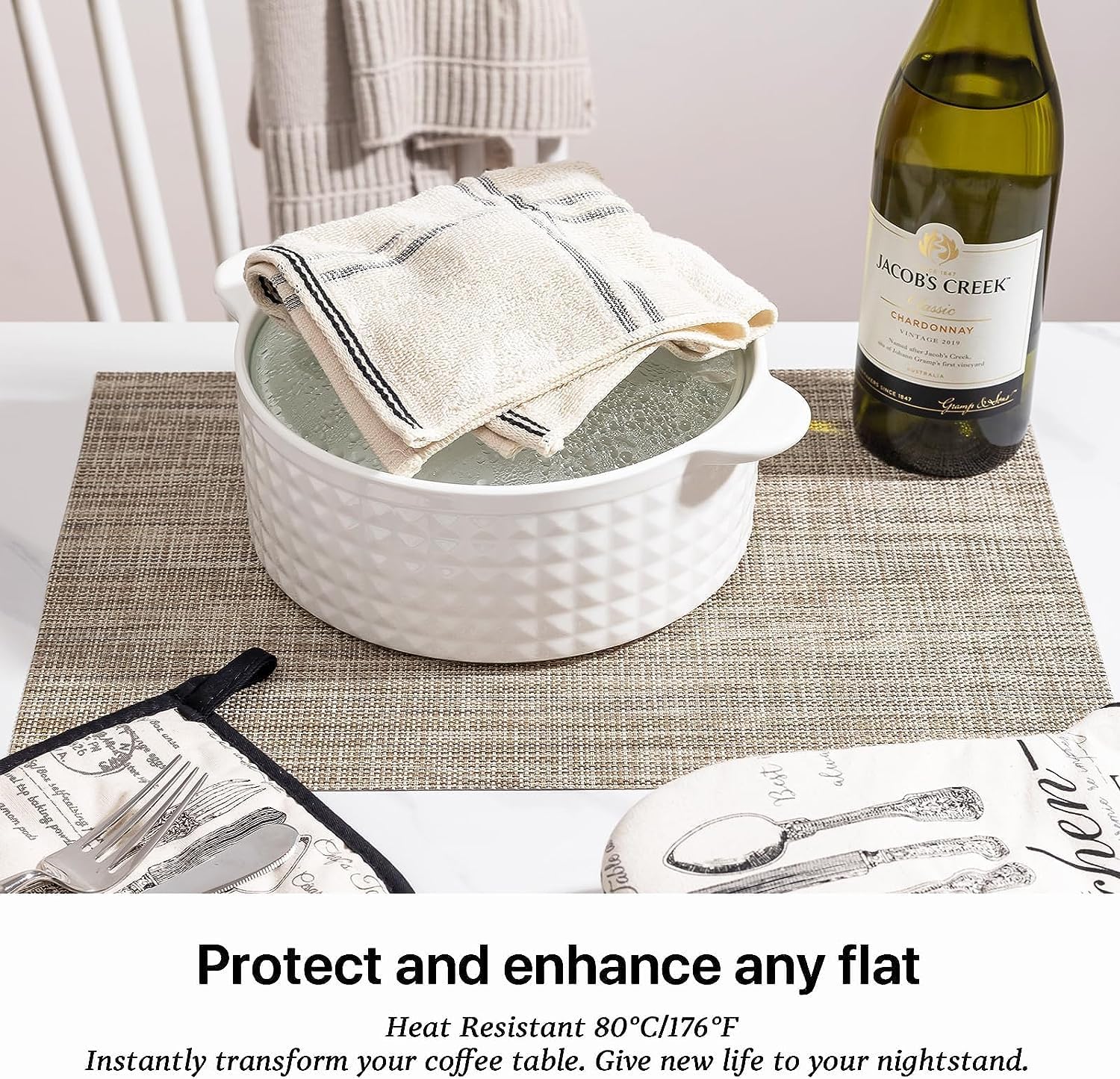 - EASY TO CLEAN:The washable placemats can be washed repeatedly.How to clean the place mats for kitchen table:Simply wipe with soap,water and a soft sponge or cloth.Scrub stubborn stains with a soft bristle-brush and a bleach-based cleanse.