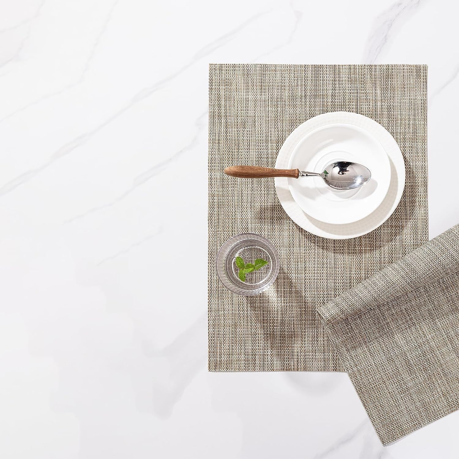 - PERFECT FOR INDOOR AND OUTDOOR:The wipeable placemat is two yarns over two, resulting in a quieter,less textural surface.The neutral color scheme and the classic size (about 12*17 inch)makes the whole table elegant and stylish full of texture!