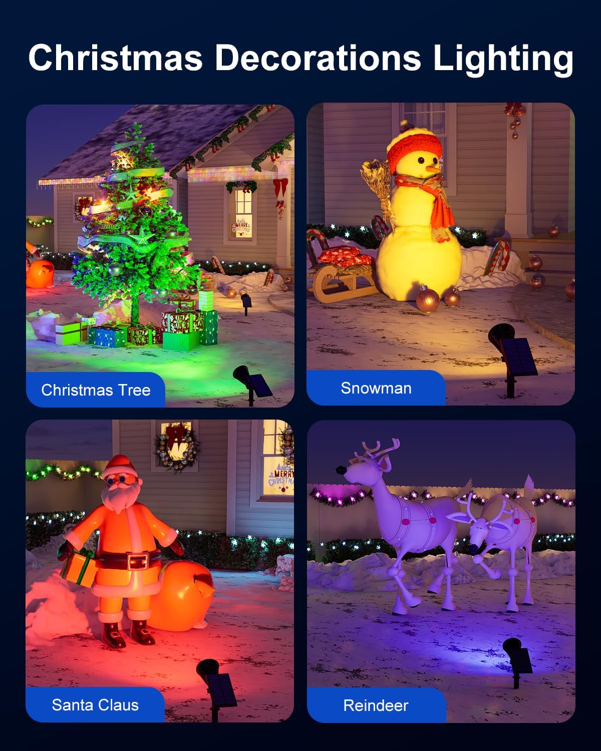- Personalised Light Color for All Festivals: The color changing solar spot lights are not only suitable for Christmas, but also meet the needs of other festivals such as Halloween, Easter, Independence Day, etc. You can choose the appropriate light colours according to the characteristics of different festivals to create personalised scenes, making your home and yard show unique charm in every festival
