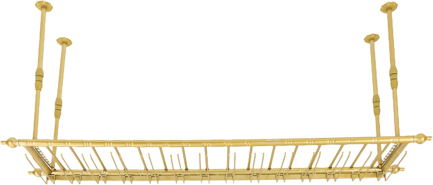 Hanging Wine Rack 59" Wall Mounted Wine Glass Rack Ceiling Adjustable Hanging Bar Glass Holder Shelves for Kitchen Bar Restaurants Industrial Iron Storage Shelf