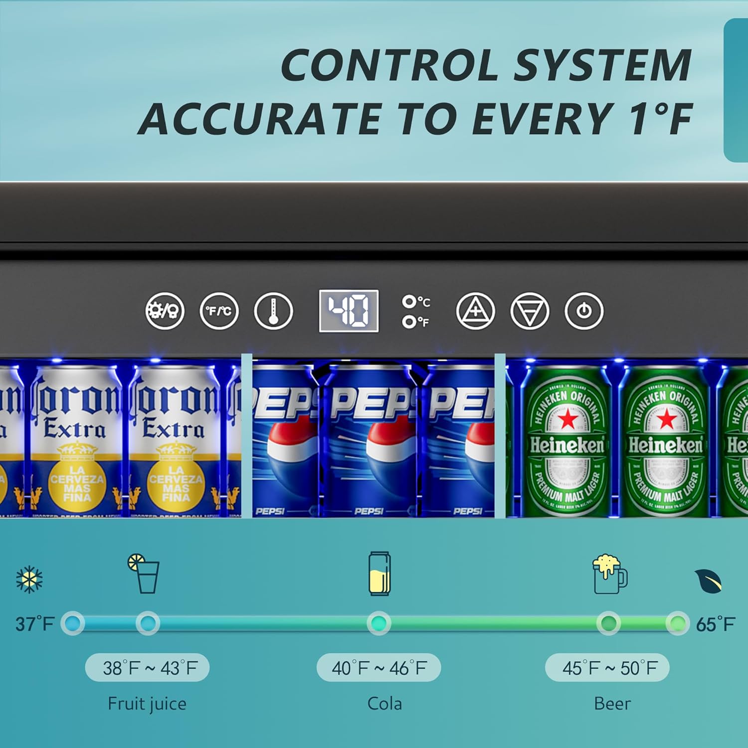 - Large Capacity & Mobile Shelf - This beverage refrigerator provides beverage enthusiasts with more spacious storage for up to 180 standard-sized cans. The beverage cooler includes 3 pull-out shelves that can be adjusted at will to space each tier on 5 fixed slots. The under counter refrigerator is equipped with a highly sensitive sensor that is adjustable from 37-65°F, and the temperature range will not exceed 3.6°F, so the drinks are at their best whenever you serve them