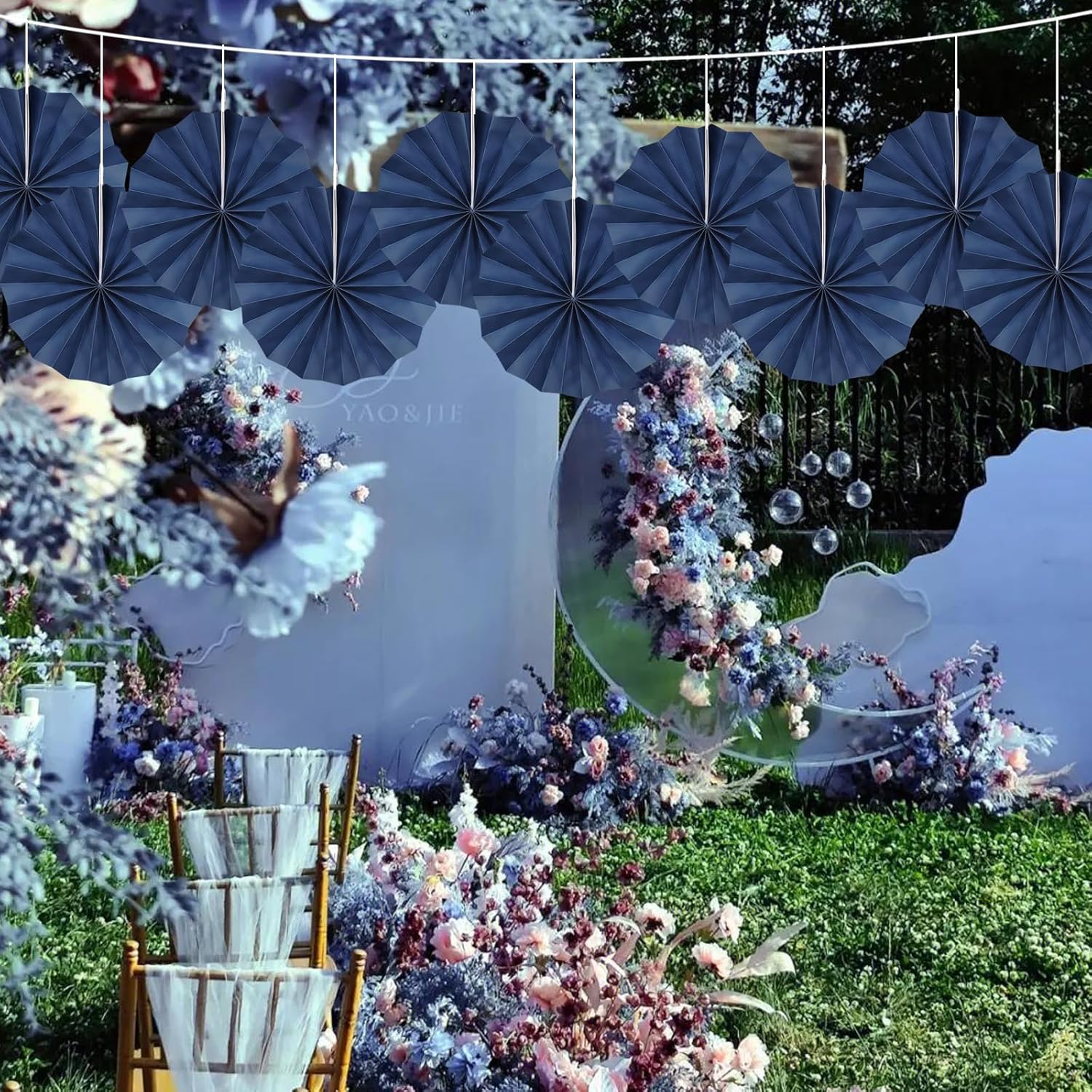 Blue Party Decorations,Blueberry Party Decorations Decorations Party Paper Fans Bulk 8in,Graduation Decoration Classroom Decor, Western Themed Party Decorations 30 Color DIY Set (Deep Blue)