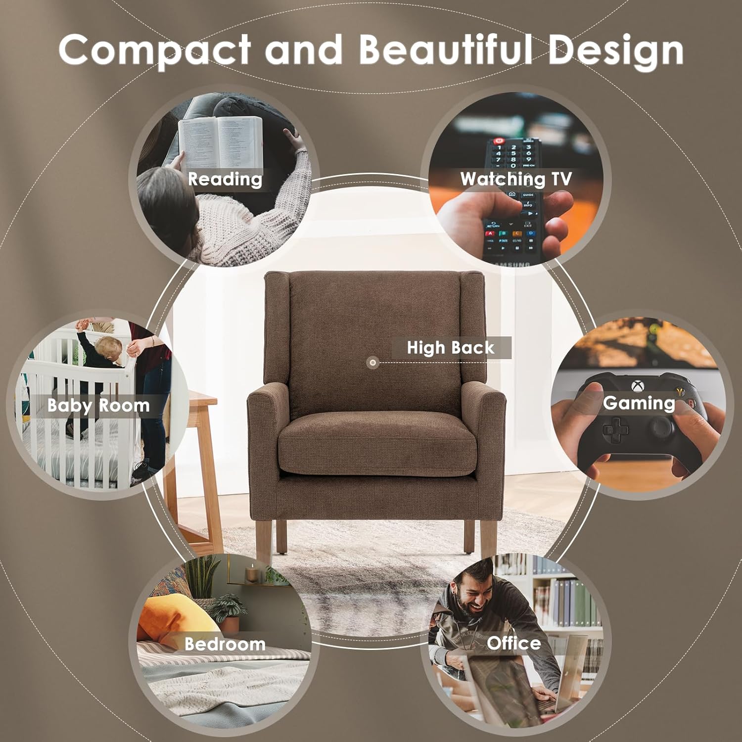 - Timeless and Ergonomic Design: Elevate your living space with this mid centry modern upholstered chair. Its stylish design and exquisite Chenille fabric add a touch of contemporary elegance to any room. The padded armrests provide support for your arms and relaxation for your shoulders, while the gently curved backrest relaxes back muscles and relieves fatigue.