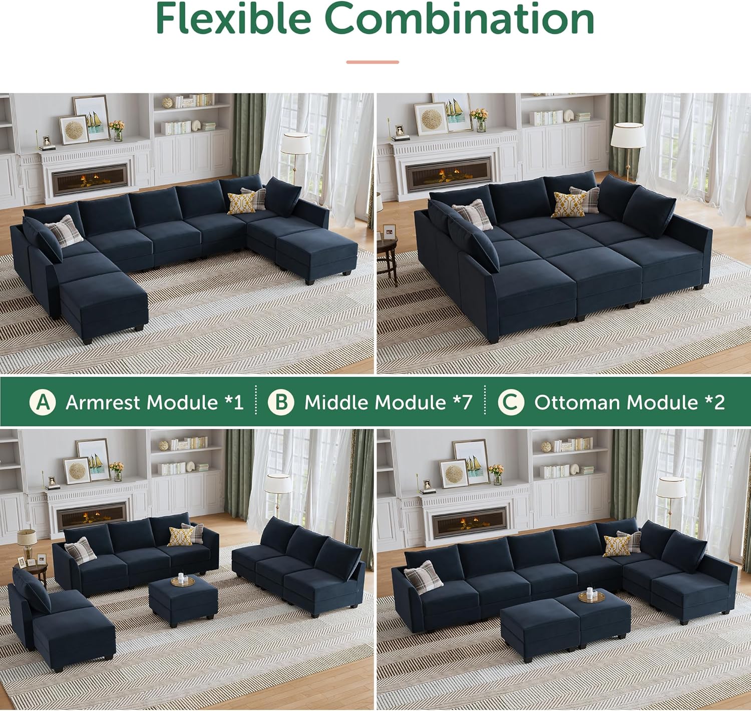 - Additional modules can be added: The modular sofa can be expanded the capacity of the sofa by adding A, B, or C modules without having to spend money to replace larger sofa as the family needs