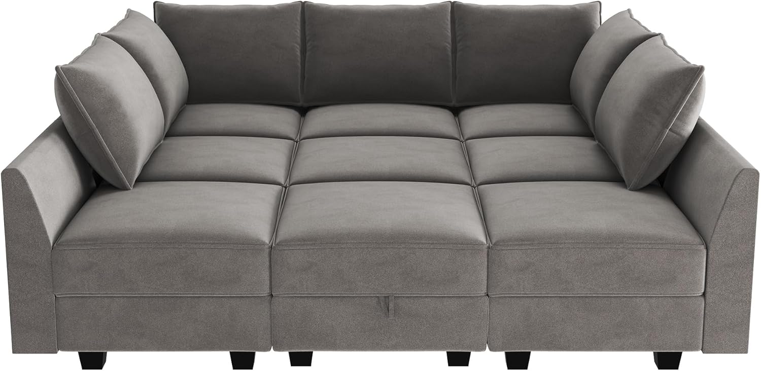 HONBAY Velvet Sectional Sofa Couch with Storage - Modular Sleeper for Living Room, Grey