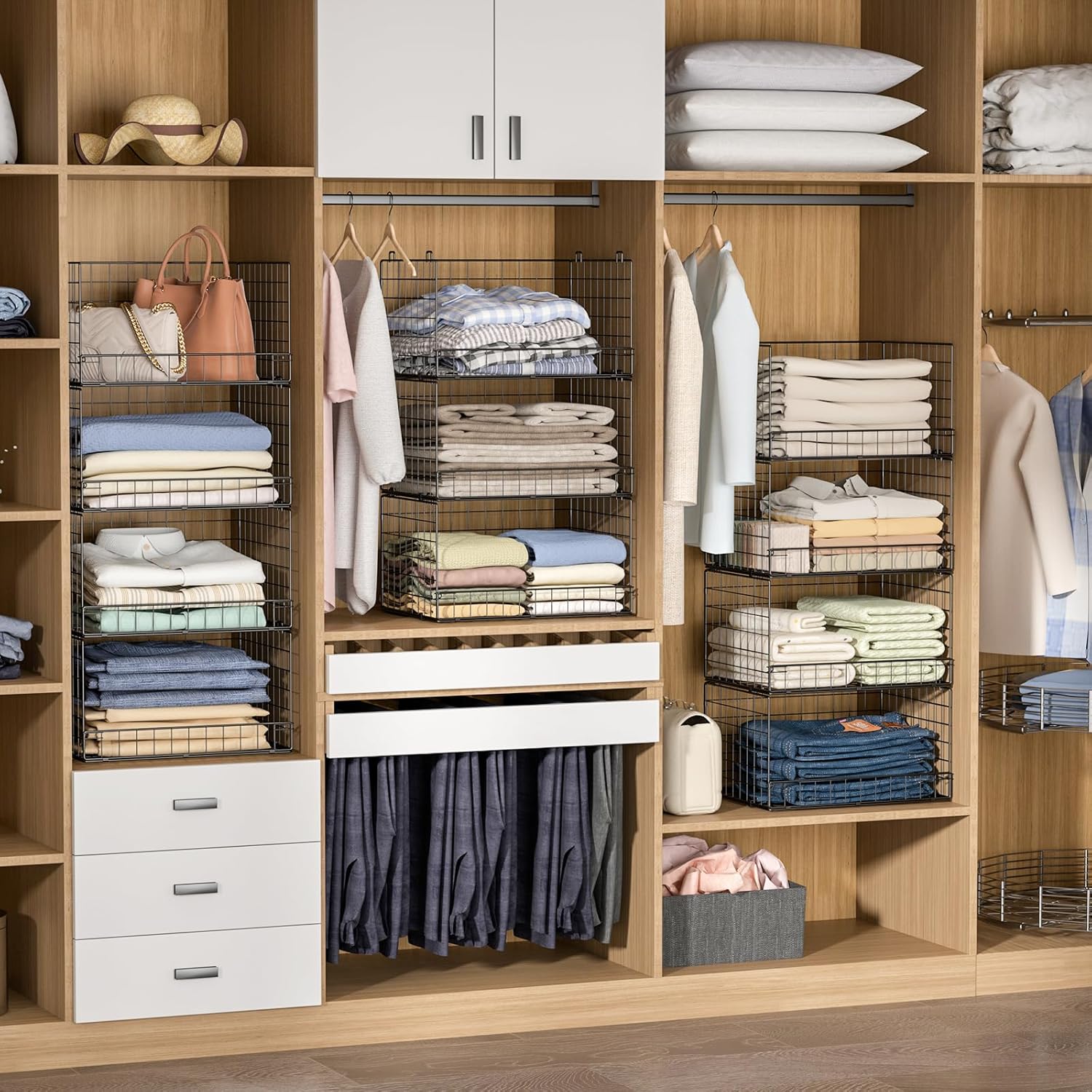 - ใSturdy Iron MeshใMade of premium iron mesh,these closet storage bins are sturdy,durable,breathable,visible,no smell and washable.Would not bend or damage like plastic or cloth storage baskets. You can count on it is strong enough and has a good craft.