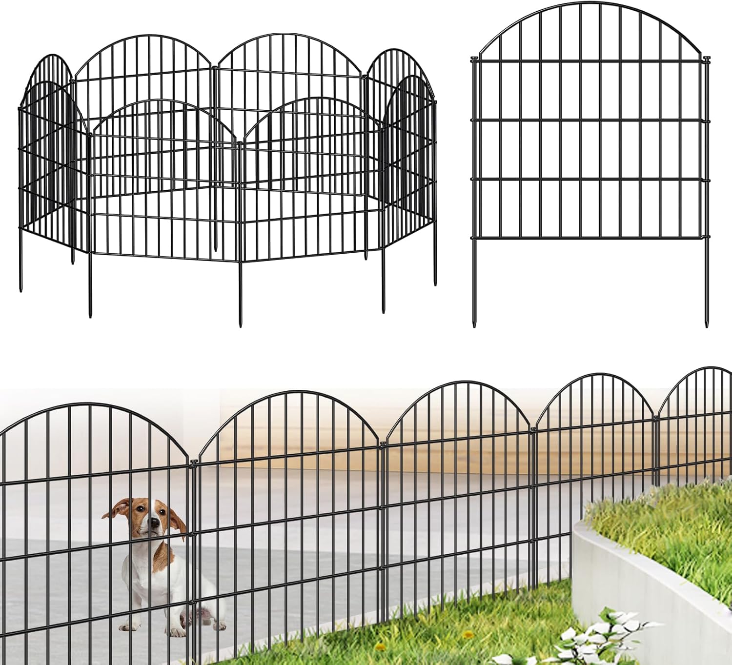 Metal Garden Fence 28in (H) x 18.7ft (L), 8 Panels + 9 Stakes Dog Fence Border Fence Animal Barrier, No Dig Garden Fencing for Yard Flower Bed Lawn Patio Outdoor, CTW2829 Black