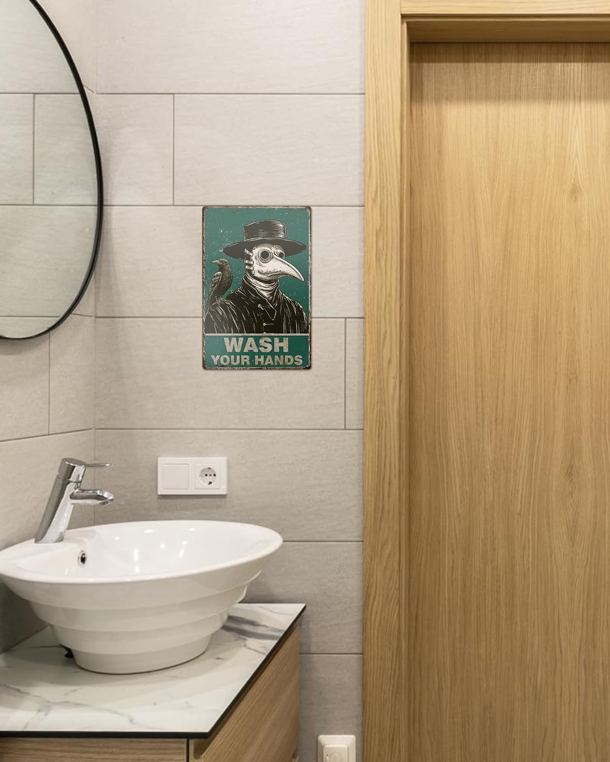ALKB Halloween Bathroom Decor 8x12 Inch - WASH YOUR HANDS, Gothic Vintage Metal Tin Sign, Novelty Gifts for Men Women Adult