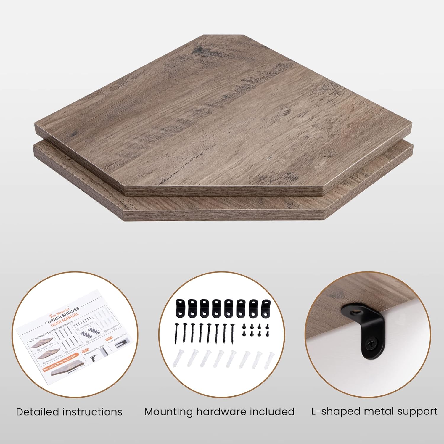 - 【Enjoy the Quality】Our Corner Shelves Wall Mount features an impressive imitation wood grain finish that brings a touch of natural atmosphere and beauty. This rustic design is perfect for reminiscing on traditional country life and creating a cozy ambiance in your home. With a versatile wood color that is easy to match and clean, these corner shelves are suitable for a wide range of decor styles