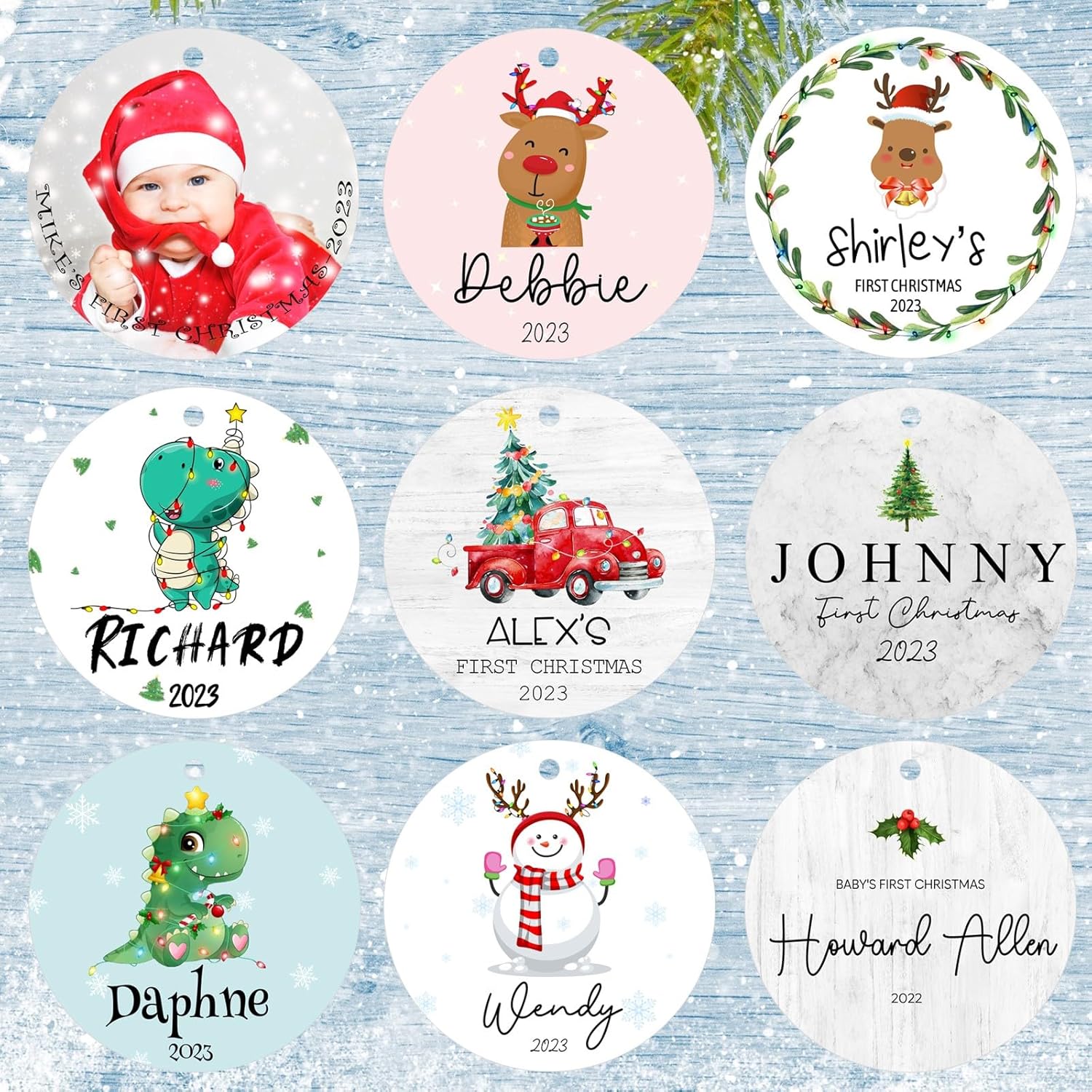 - ๐ ๐ FREE CUSTOMIZATION:Customize personalized Christmas ornaments 2025 for your baby,express your best wishes to the your baby and celebrate the first joyful holidays together.Just clicking the "Customize Now" button,choose the personalized ornaments design,upload the picture and type the text,you will own a photo ornaments for Christmas tree