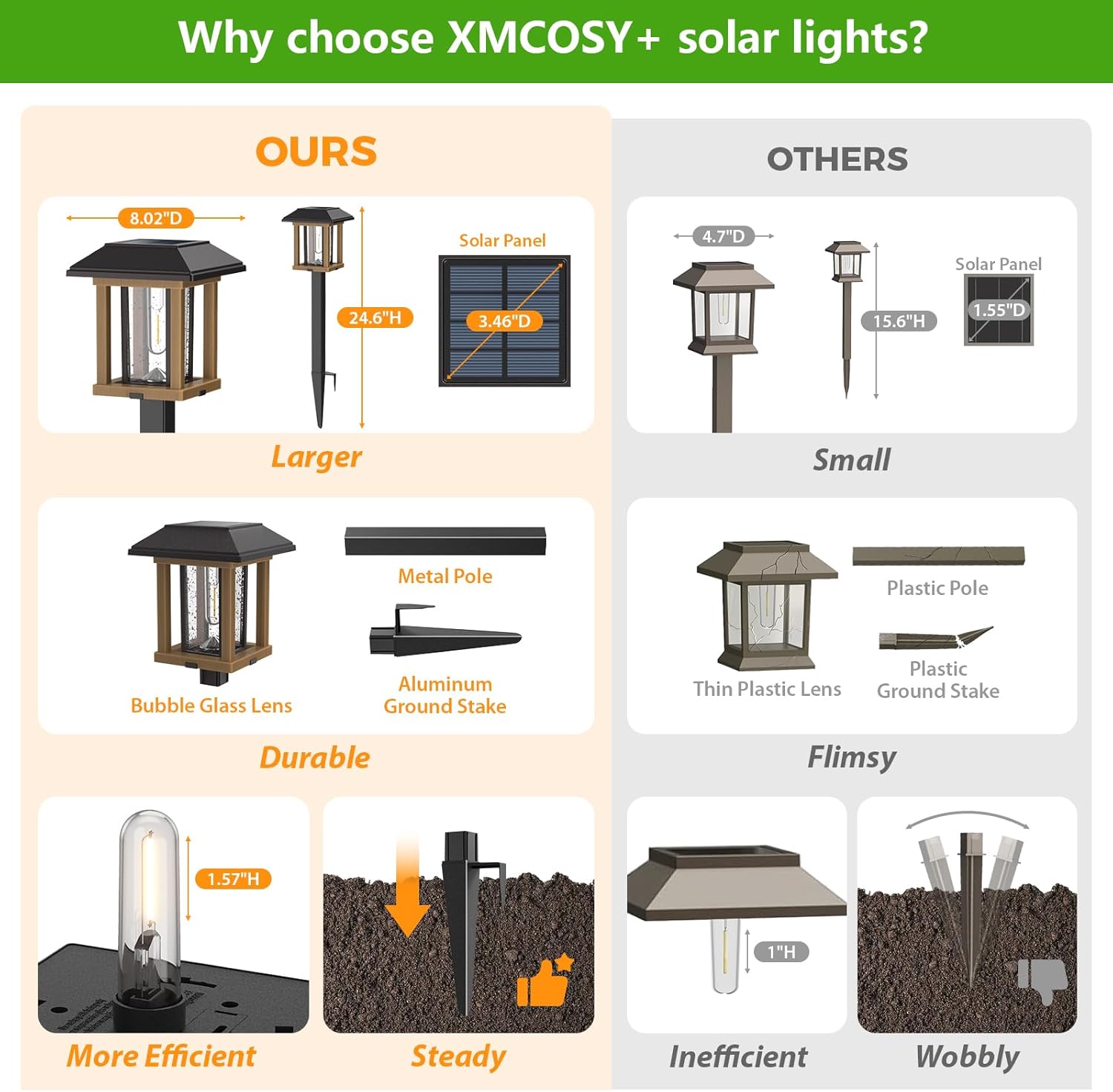 - ✨Vintage Solar Pathway Lights with Warm Ambiance: Integrated LED vintage bulb emits a 25 lumens warm white glow, creating 8+ hours of cozy illumination for gardens/pathways. Our outdoor lights solar powered design combines Edison-style charm with modern efficiency, featuring weather-resistant bronze metal solar outdoor lights that withstands all seasons.
