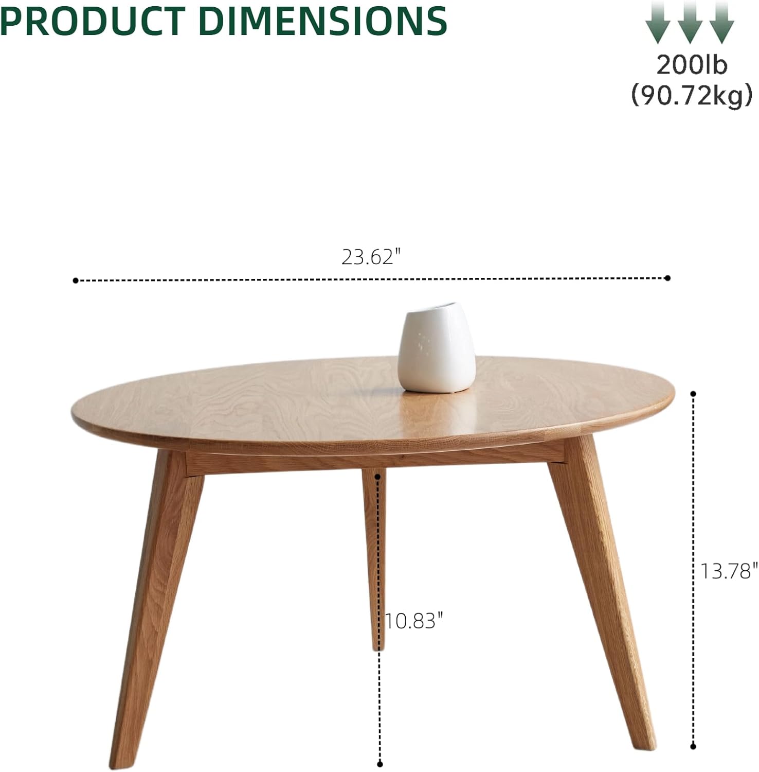 - γ100% Premium Solid Oakγ This Round coffee table is made entirely from FAS-grade North American oak, ensuring superior quality, including both the tabletop and legs. The rich, natural wood grain enhances its elegant appearance. Unlike other products, no auxiliary or artificial materials are used, providing a longer lifespan without deformation.
