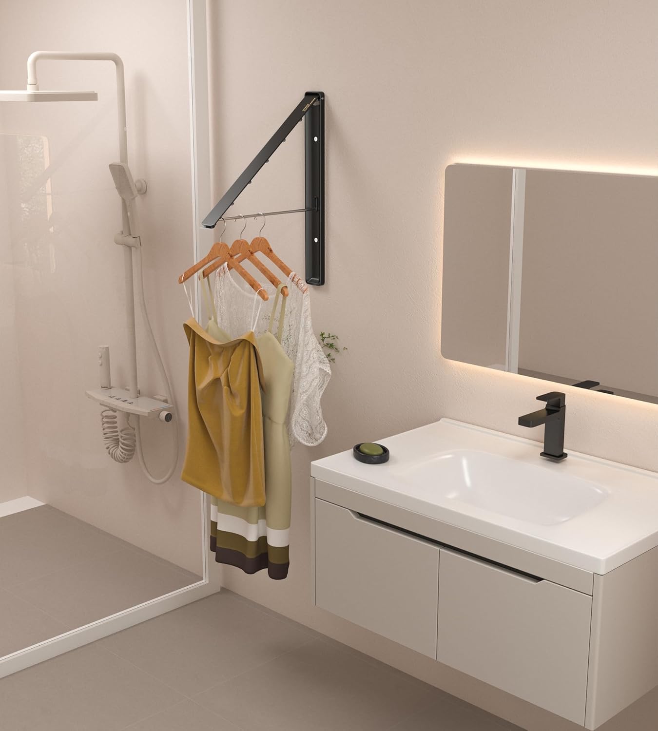 Dr.DJ Clothes Drying Rack Wall Mounted, Retractable & Foldable Clothes Hanger for Laundry Room Organization and Storage, Clothes Hanger Rack for Dorm, Closet, Balcony, Laundry Room(1P, Metal, Black)