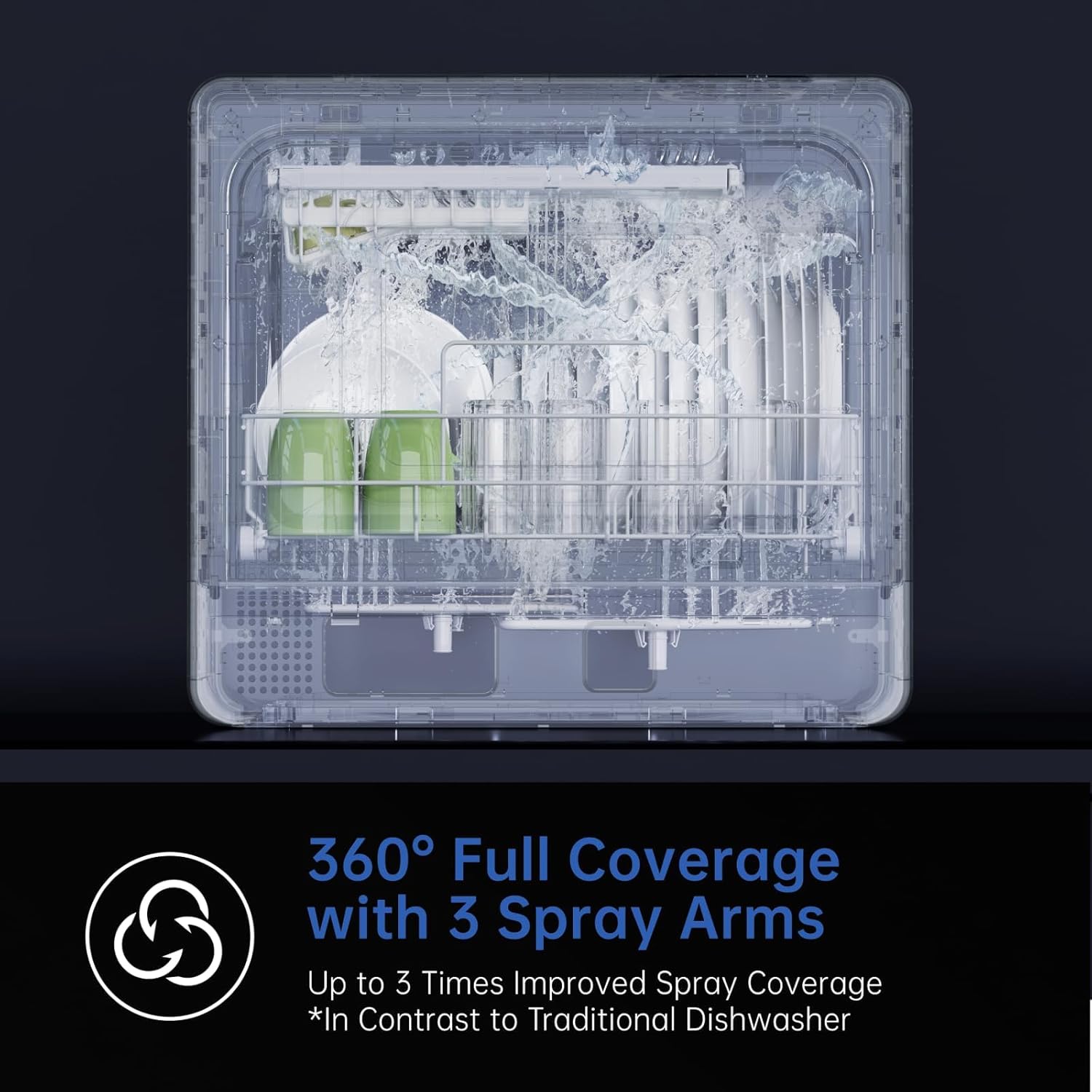 - Special Feature : 12H Delay Start, 2-Level Rack, 3-Spray Arms, 5L Built-in Water Tank, Portable