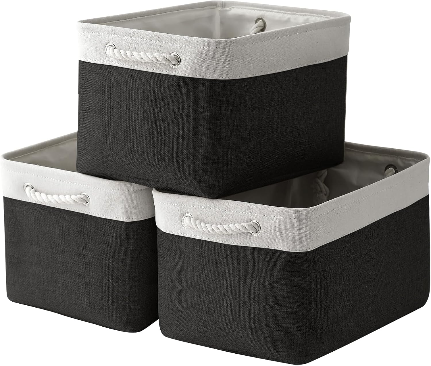 TheWarmHome Storage Basket for Gifts Empty - Large Cubes 3 Pack 15.8x11.8x11.8 inch Storage Bins for Organizing Book Cloth Bathroom Toy (White & Black)