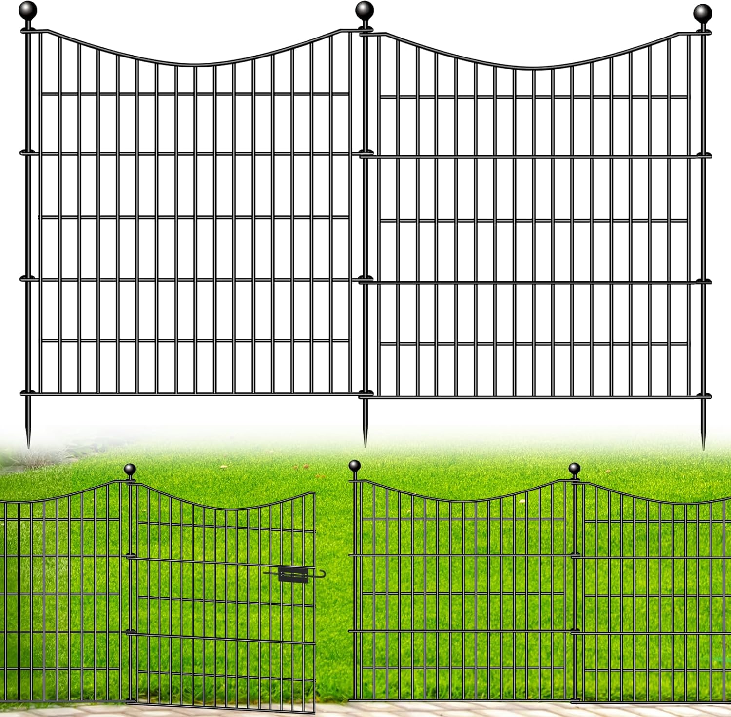 - 【Strong & Weatherproof】With spear-top pickets and sturdy metal construction, this fence protects against intruders and stands up to harsh weather.
