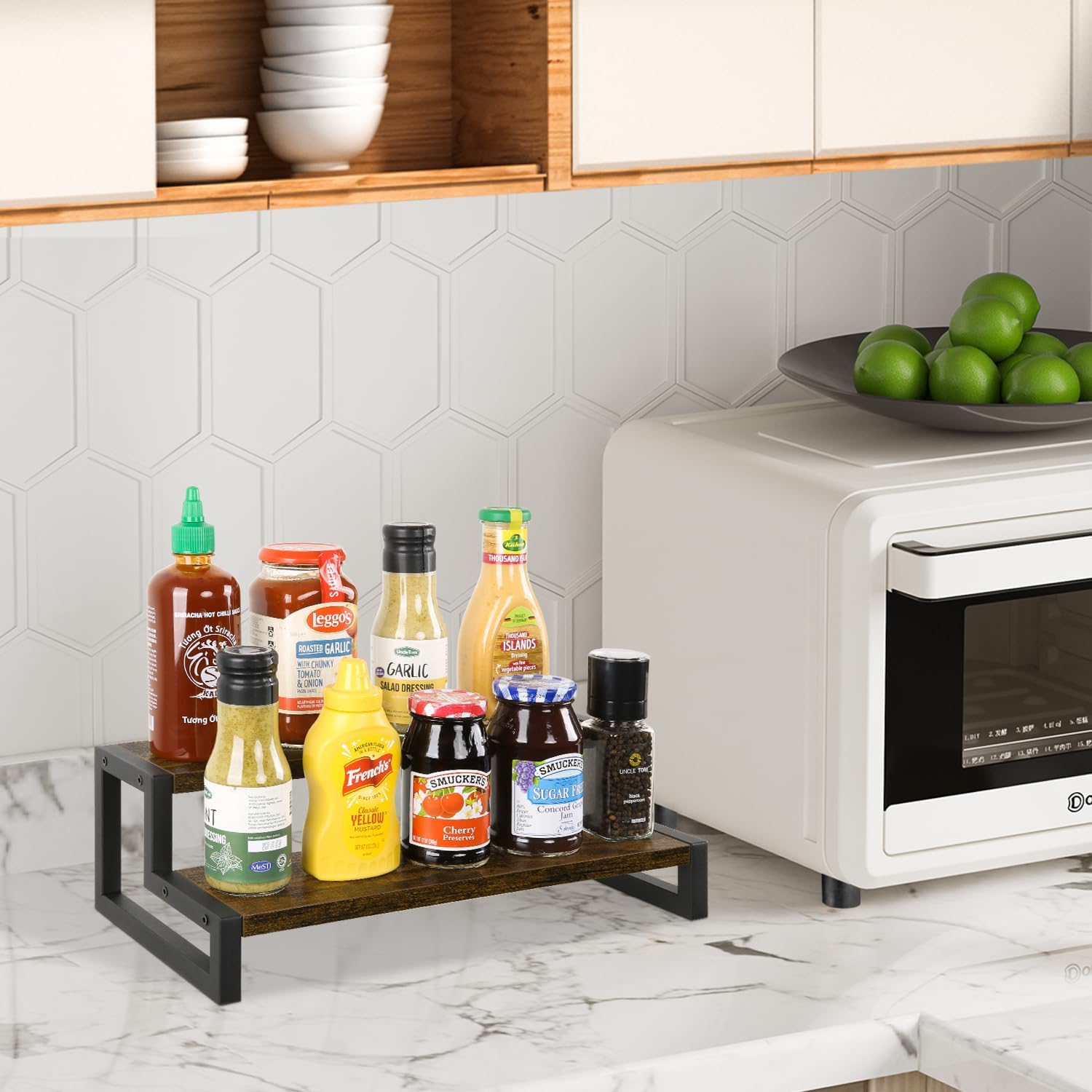 YINMIT Spice Rack Organizer for Countertop, 2 Tier Kitchen Counter Shelf, Wooden Tiered Display Stand Riser Shelf