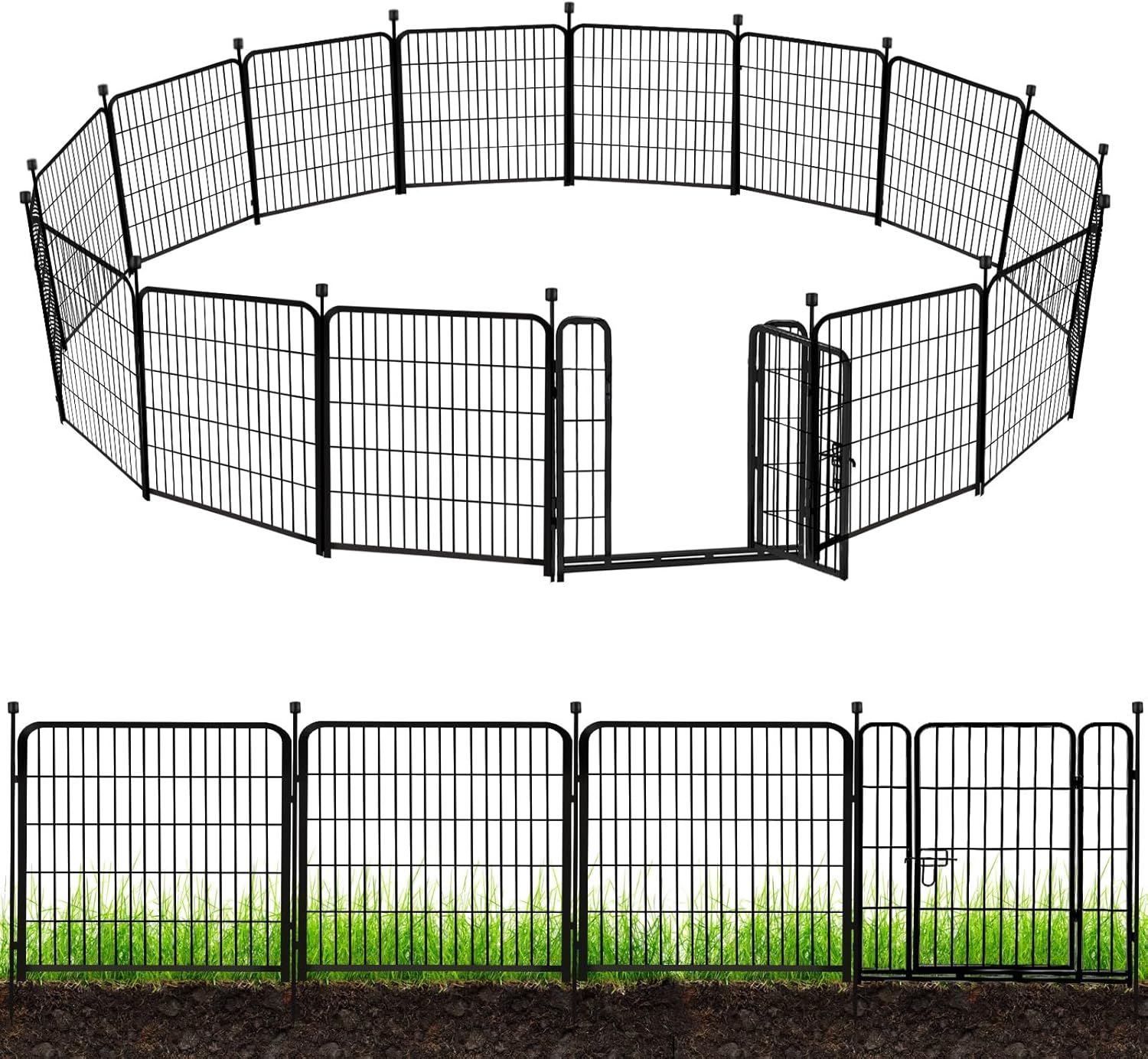 ADAVIN Garden Fence with Gate 32in(H) x 31 ft(L),14 Panels Black Heavy Duty Iron Metal Animal Barrier Fence, Indoor&Outdoor Dog Playpen, Camping Fence, No Dig Garden Border Fencing for Yard
