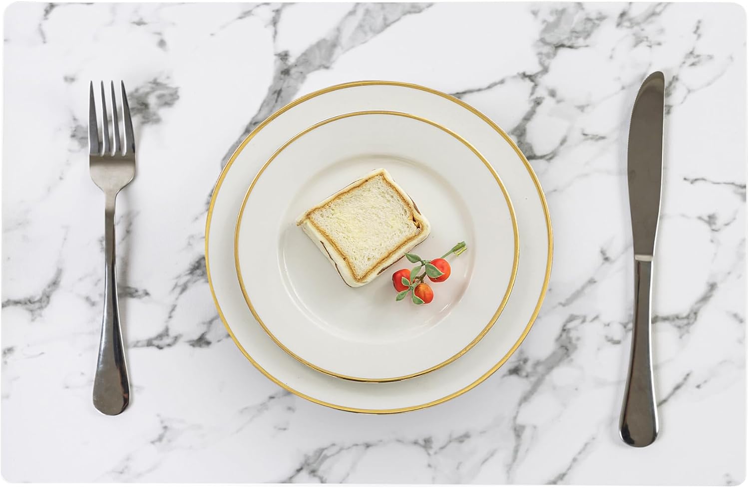 Romanstile Vinyl Placemats Set of 8-12 X 18 Inch - Heat Resistant Place Mats 100% Waterproof Oilproof Wipeable Reversible Faux Leather Table Mats for Kitchen/Dining/Party/Outdoor, Marble