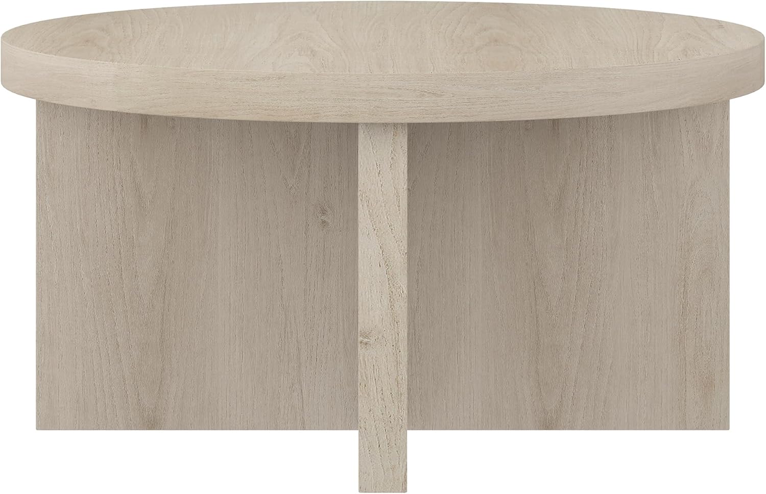 Henn&Hart 33" Round Wood Pedestal Low-Profile Coffee Table for Living Room, Family Room, Office or Apartment, Alder White