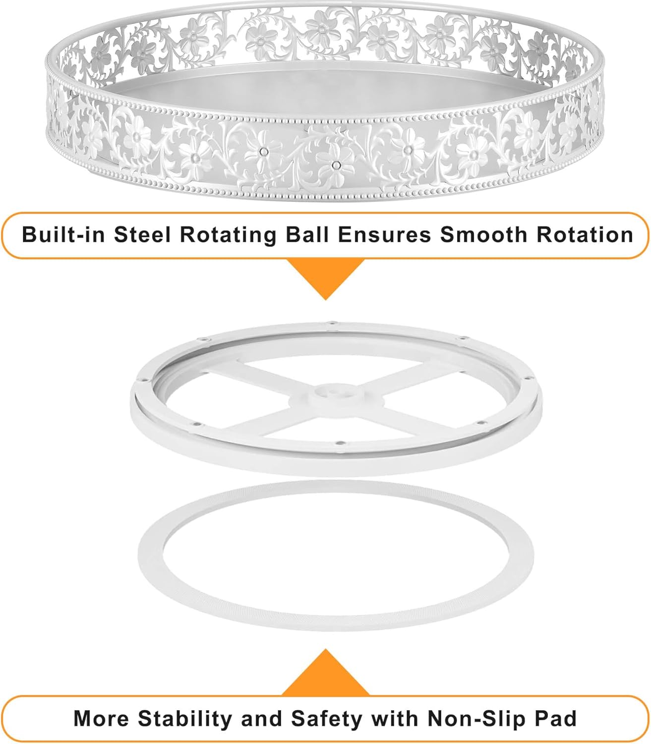 - 【Design with Floral Raised Edges and Open】The lazy susan for cabinet heightened edge with beautiful classic flower design not only provides exceptional decorative visual, but also prevents items from falling when rotating, it's safer to move the lazy susan organizer tray from one place to another.The open design of turntable organizer makes items clearly visible and easy to access and use.