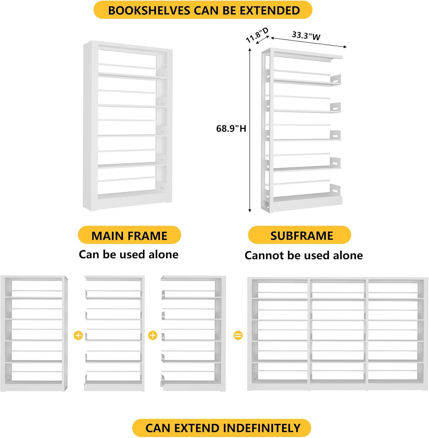 - 【Extra Large Storage Space Book Shelf】Office storage bookshelves with wide display shelves, library bookcase measure 68.9H * 36W * 11.8D. White tall bookshelves are taller and wider than other bookshelves, able to organize more items. It can be used as bookshelf, display shelf, standing shelf, storage shelf, office shelf, shoe shelf. and can be placed in living room, bedroom, study, office, etc.