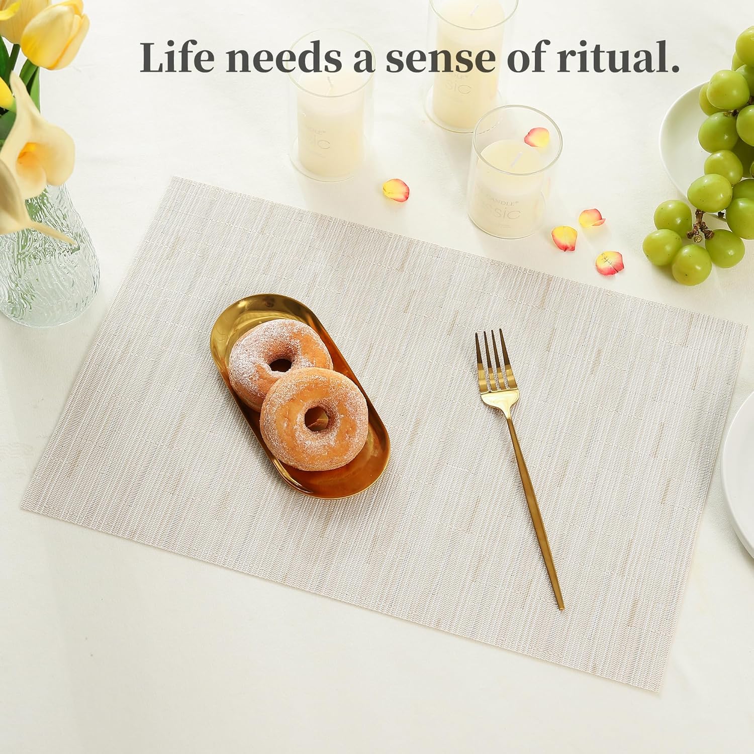 Leetaltree Pale Beige Placemats Set of 8 - Heat Resistant Non-Slip Place mats for Dining Table, Washable Durable PVC Vinyl Woven Table Mats(Pale Beige, 8)