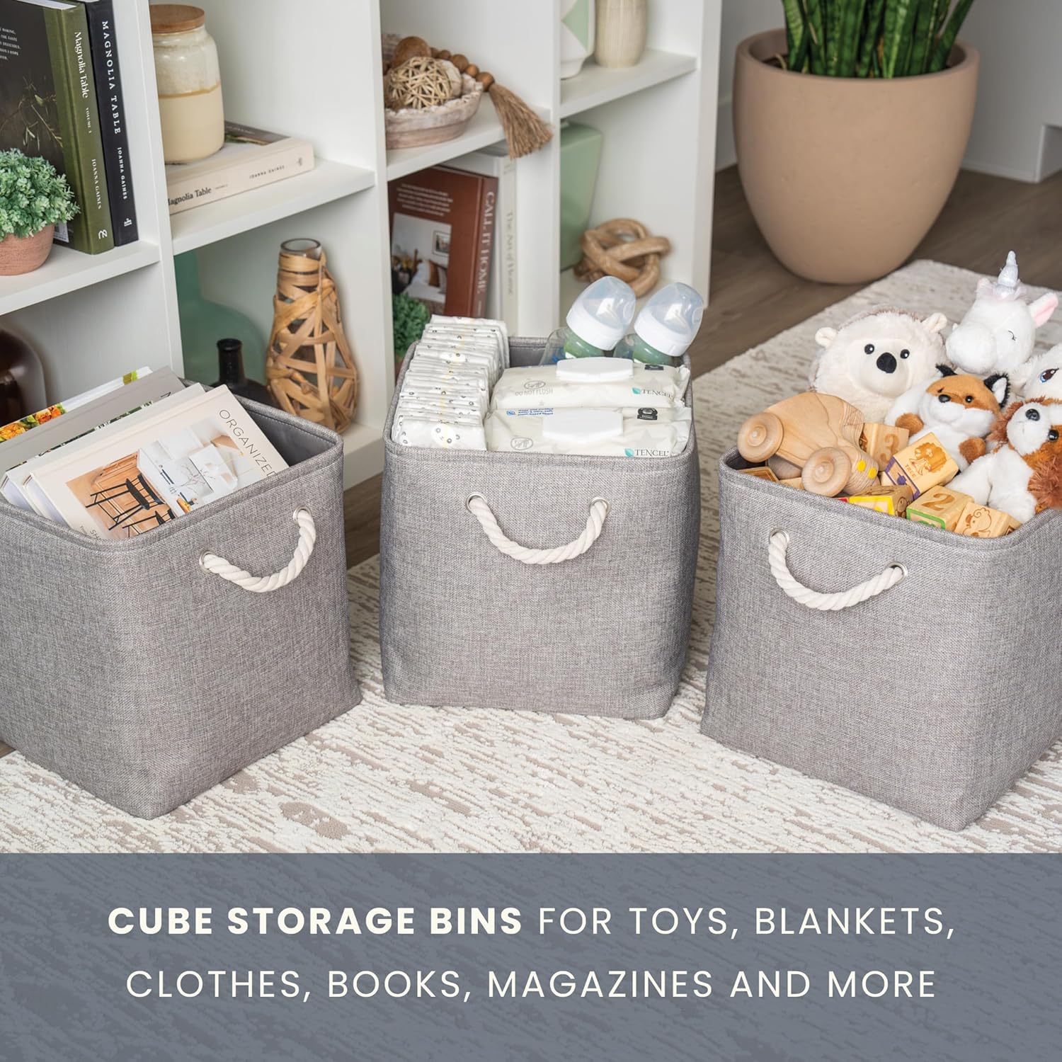 - Decorative Fabric and Rope Handle - These versatile 11 x 11 storage cubes baskets for organizing your everyday life are made with a thick, high-quality fabric and fitted with rope handles to add a stylish touch to a living room, bedroom, office, or personal space.