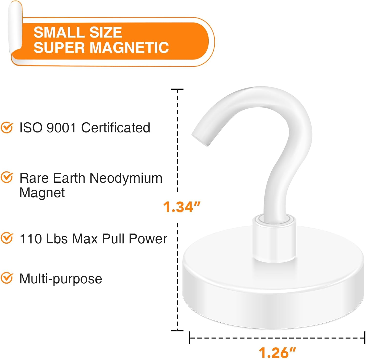 - 【Premium Magnetic Hooks】- Ni+Cu+Ni Triple Layer nickel coating greatly reinforces corrosion resistance. The best coating available, which provides a shiny and rust resistant coated steel cup provides protection for the strong metal magnetic hooks and helps to prevent chipping or cracking, Safe to Use!