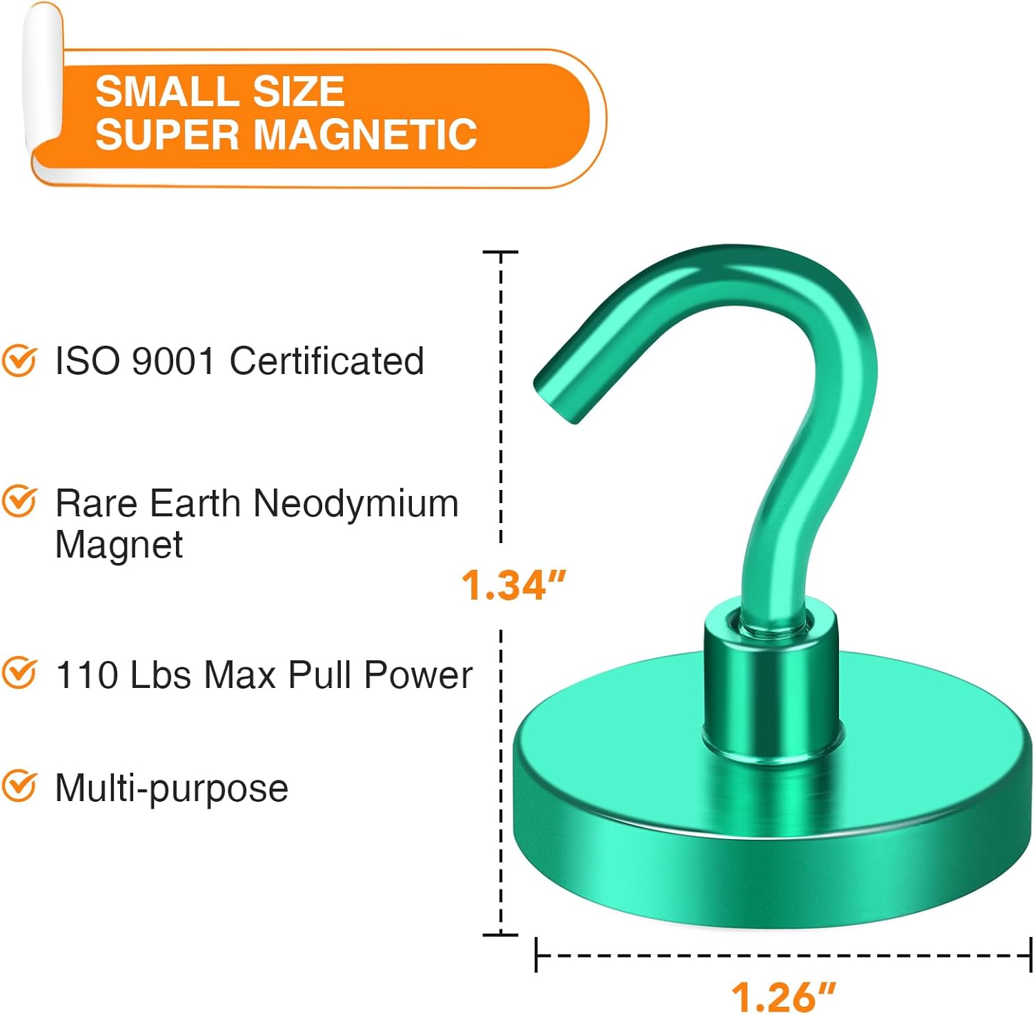 MIKEDE Strong Magnetic Hooks, 110Lbs Heavy Duty Magnetic Hooks for Cruise, Neodymium Earth Magnets with Hooks for Hanging, Super Metal Industrial Magnets for Grill, Storage (Green,10 Pack)