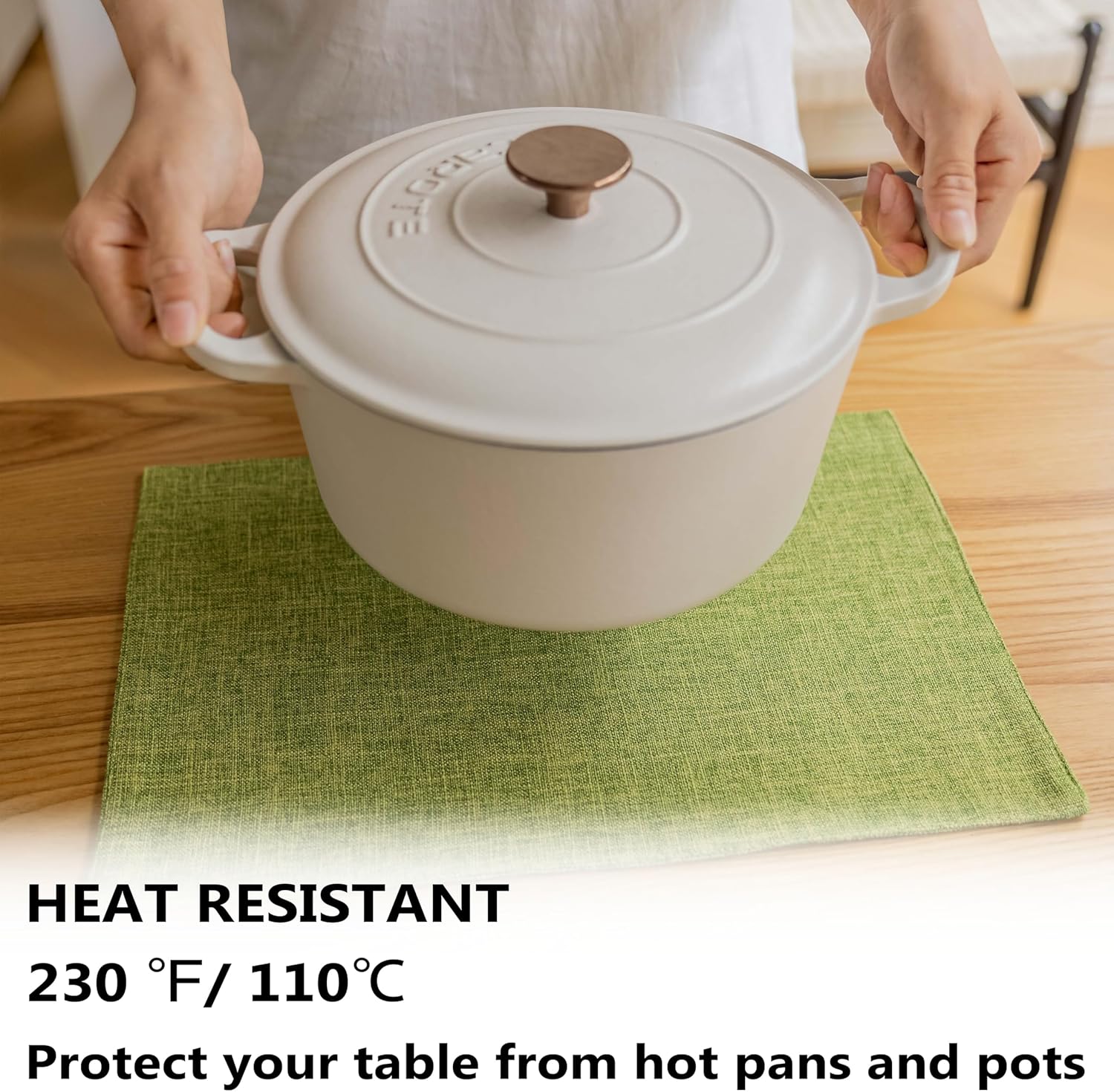 Demetex Placemats Set of 6 Green Decorative Table Mats Modern Linen Placemats Washable Heat Resistant Plate Mats for Dinner Gathering Kitchen, Lime Green