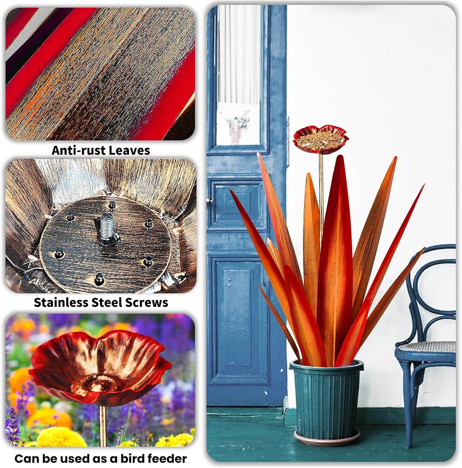 - ❤ [Simple to Install] - The tequila patio decor art sculptures can be placed on the ground directly, easy to install and no need any tools, just put the metal flowers decor anywhere you want.