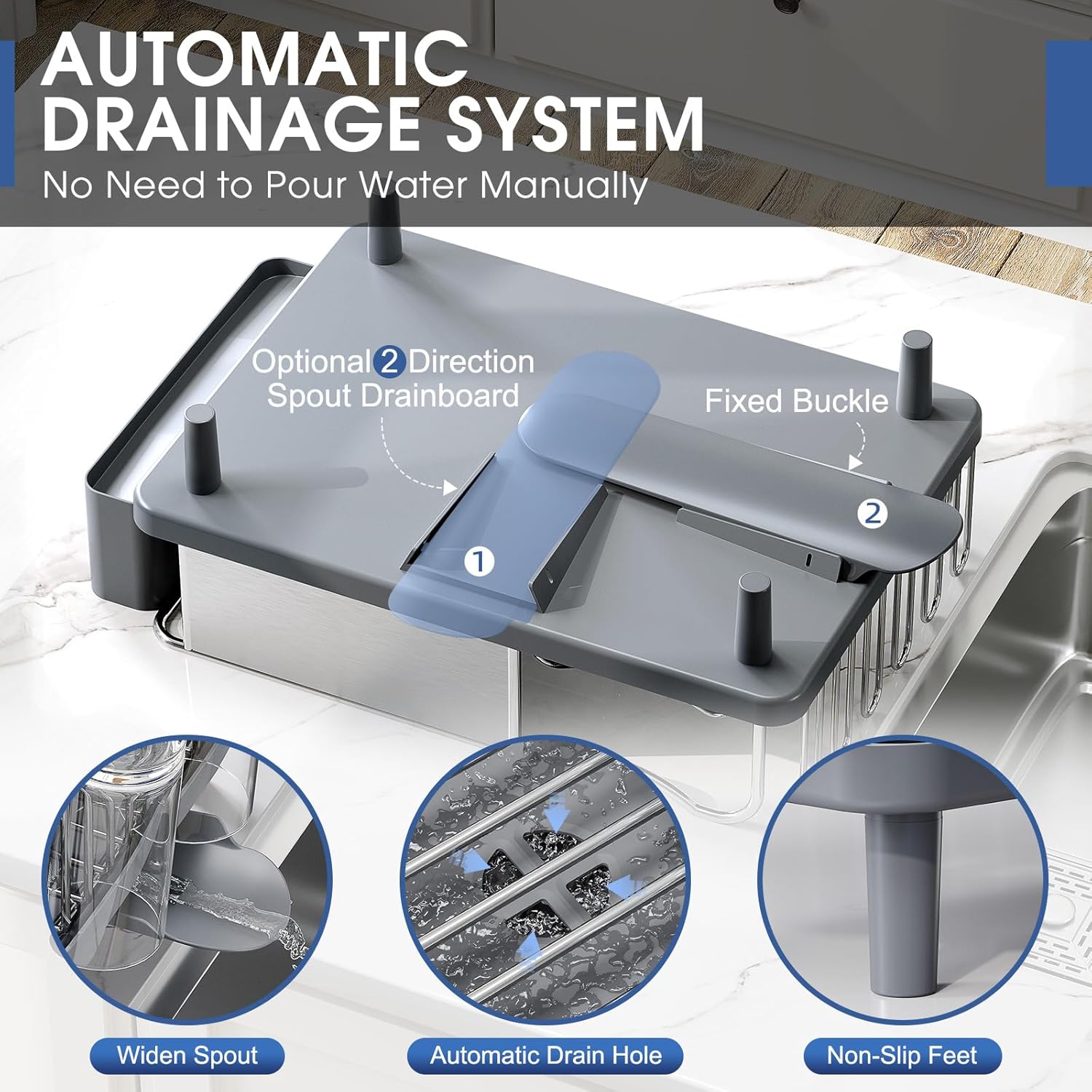 - Premium 304 Stainless Steel Dish Drying Rack: Built with surgical-grade 304 steel (trusted in professional kitchens!), this over sink dish drying rack resists rust and corrosion forever. No flaky coatings, no stains – just a durable drying rack that survives daily chaos by your kitchen sink!