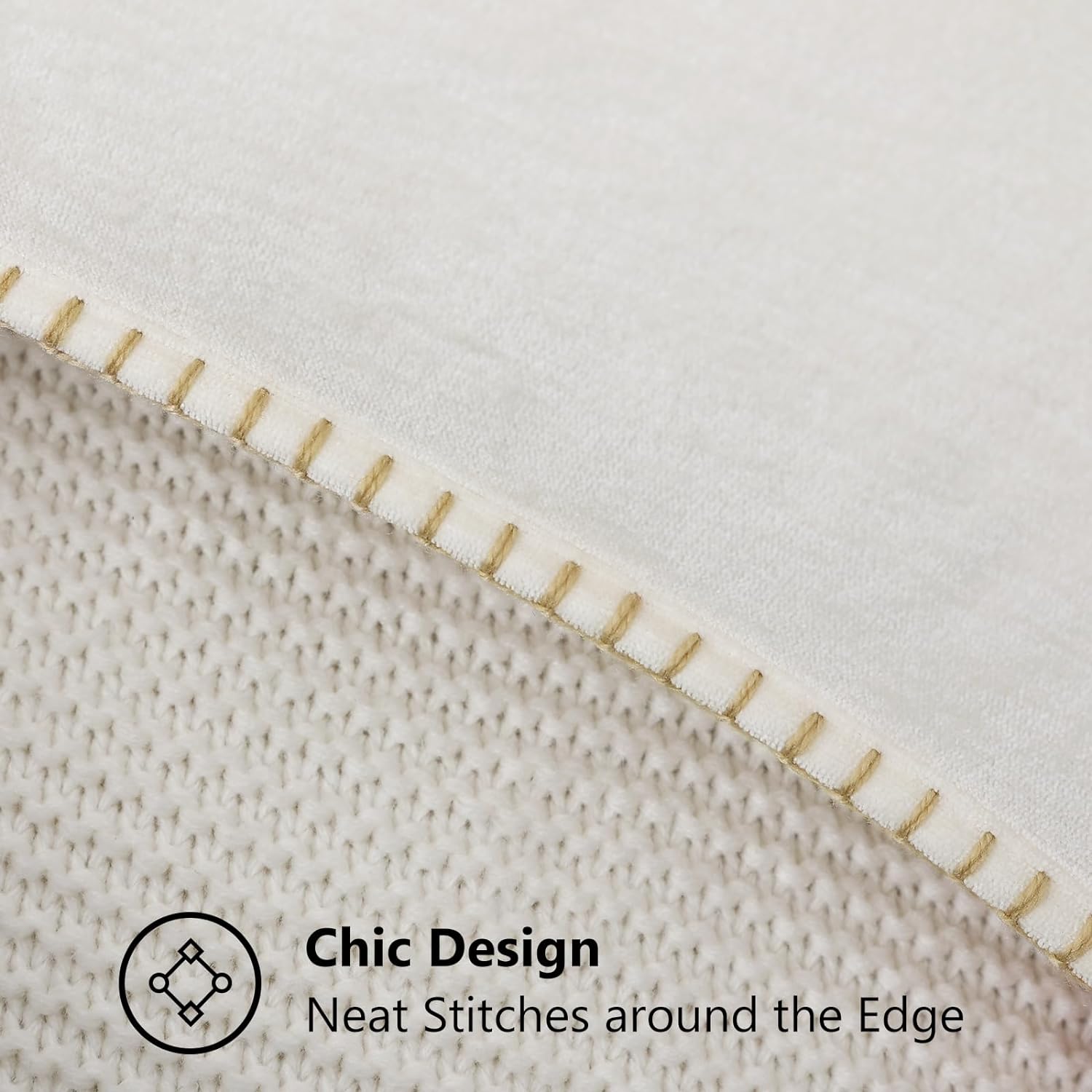decorUhome Chenille Soft Throw Pillow Covers 18x18 Set of 2, Farmhouse Velvet Neutral Decorative Euro Pillow Covers with Stitched Edge for Couch Sofa Bed Home Decor, Cream White