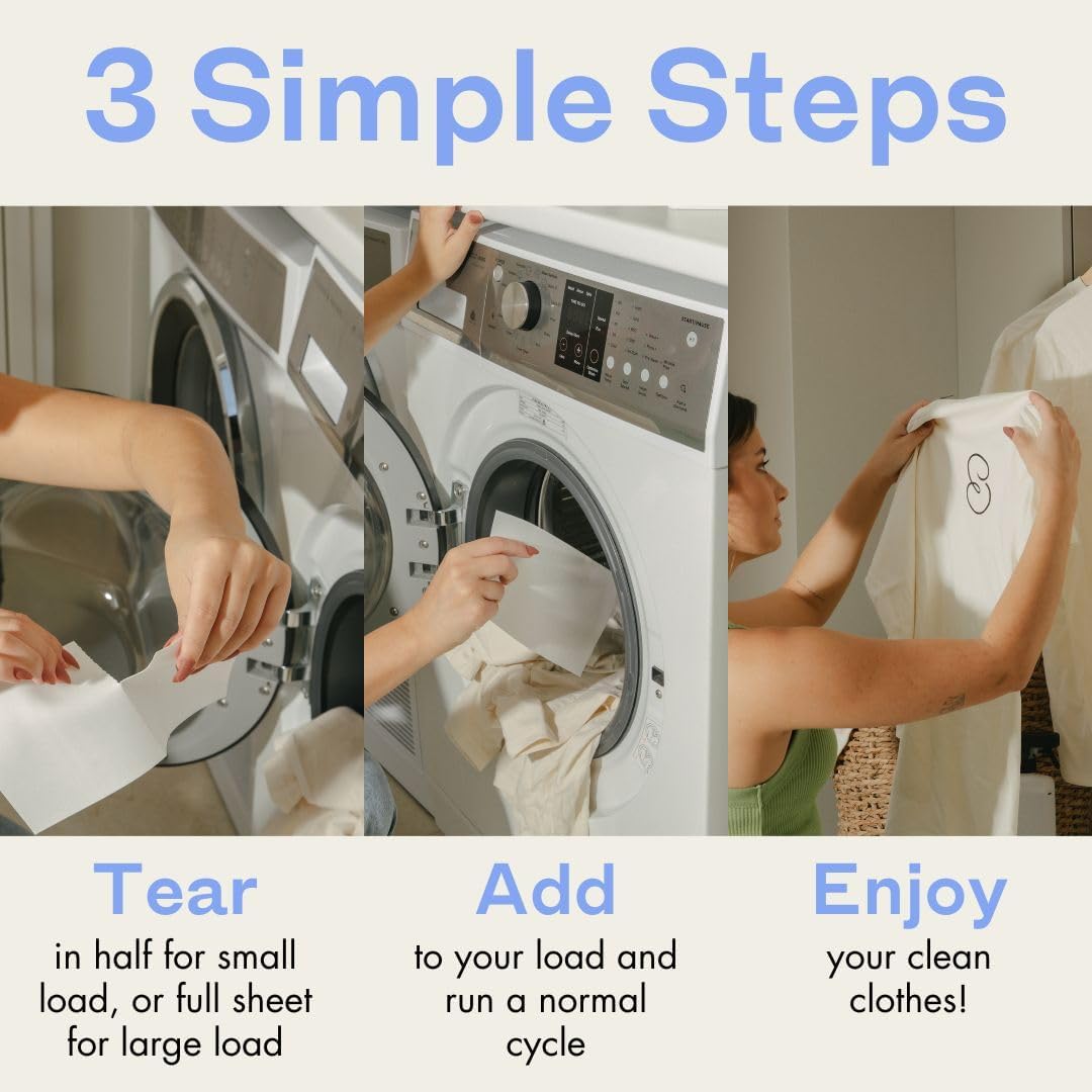- ✅ HOW IT WORKS: Place a laundry sheet in the drum with your clothes, wash as normal. Use a full sheet for standard loads and a half sheet for smaller loads. Suitable for all machine types, water temperatures and cycles (including hand washing and delicates).