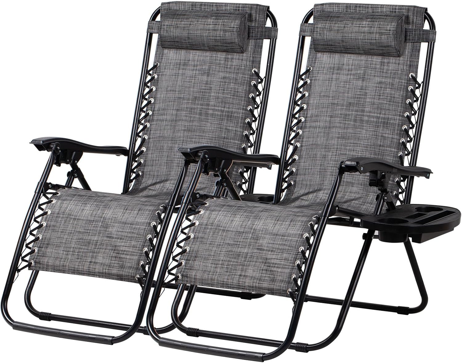 Nazhura Set of 2 Relaxing Recliners Patio Chairs Adjustable Steel Mesh Zero Gravity Lounge Chair Beach Chairs with Pillow and Cup Holder(Grey)