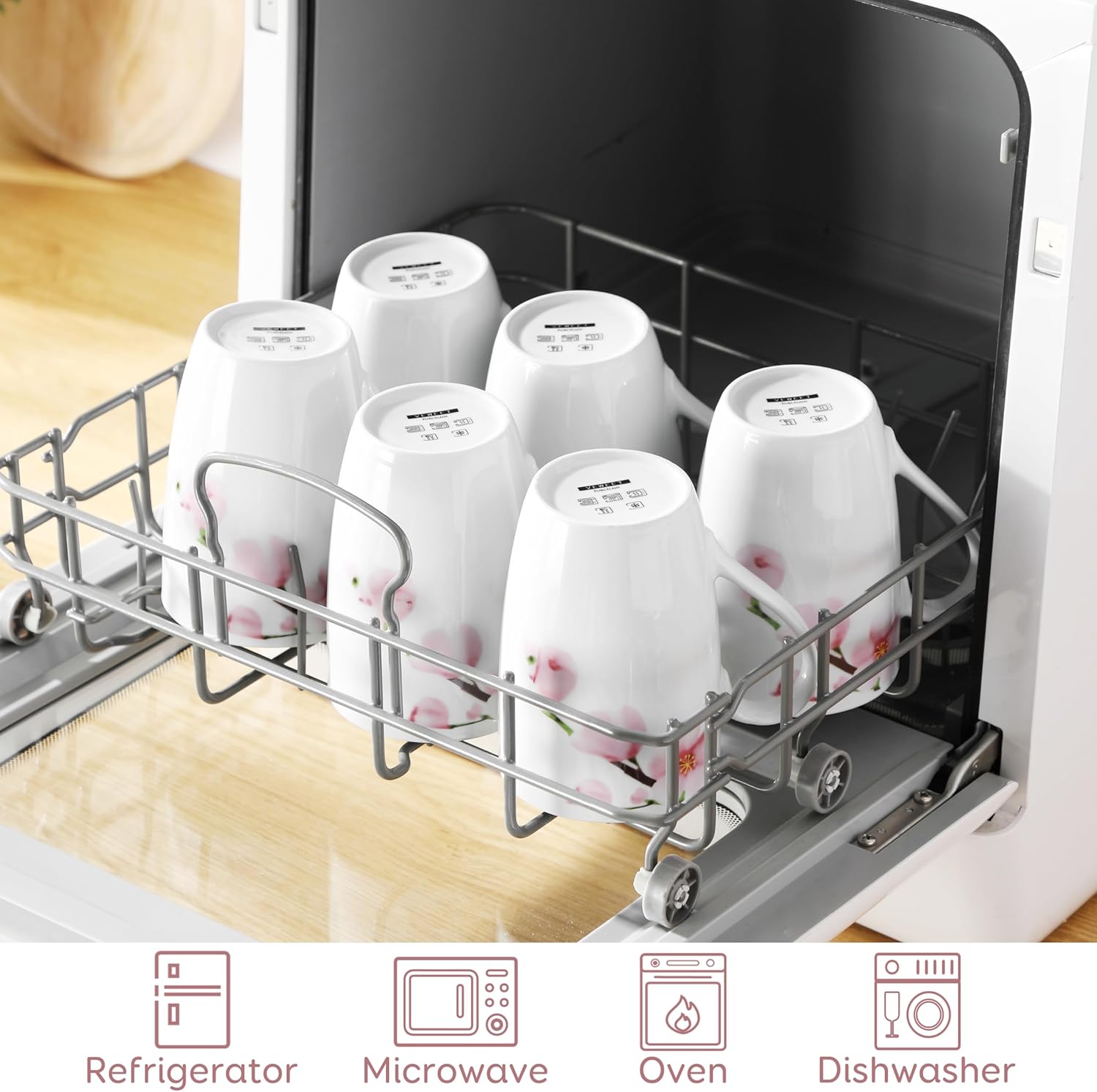 - ELEGANT MUG DESIGN: Embrace modern sophistication with our pristine white mugs adorned with pink floral. Elevate your sipping experience