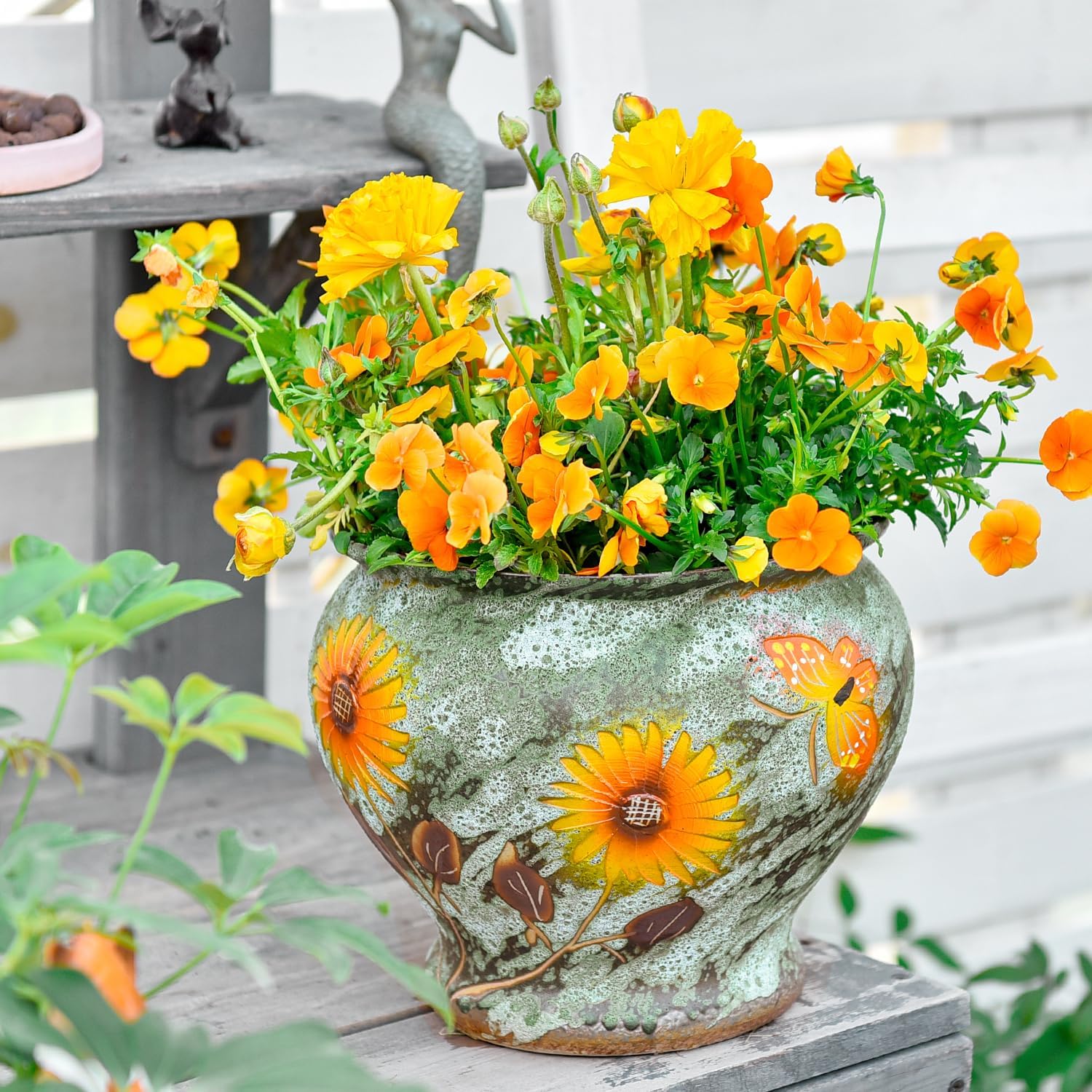 Sungmor Ceramic Hand Painted Succulent Flower Pots, 9 Inch Large Pottery Pots for Indoor Outdoor Plants, Decorative Ceramic Vase for Flower Arrangement Home Decor, Vintage Centerpieces Flowerpot