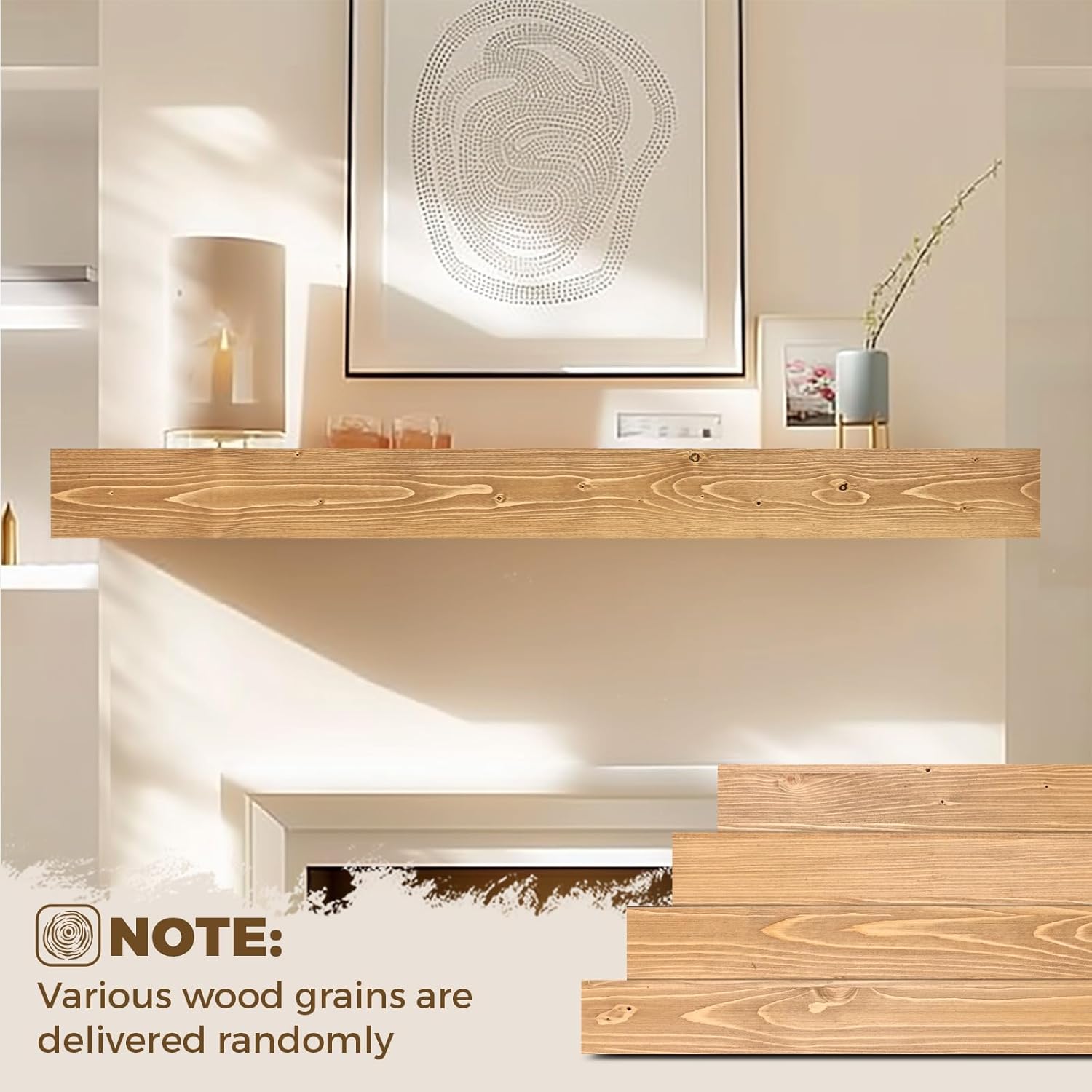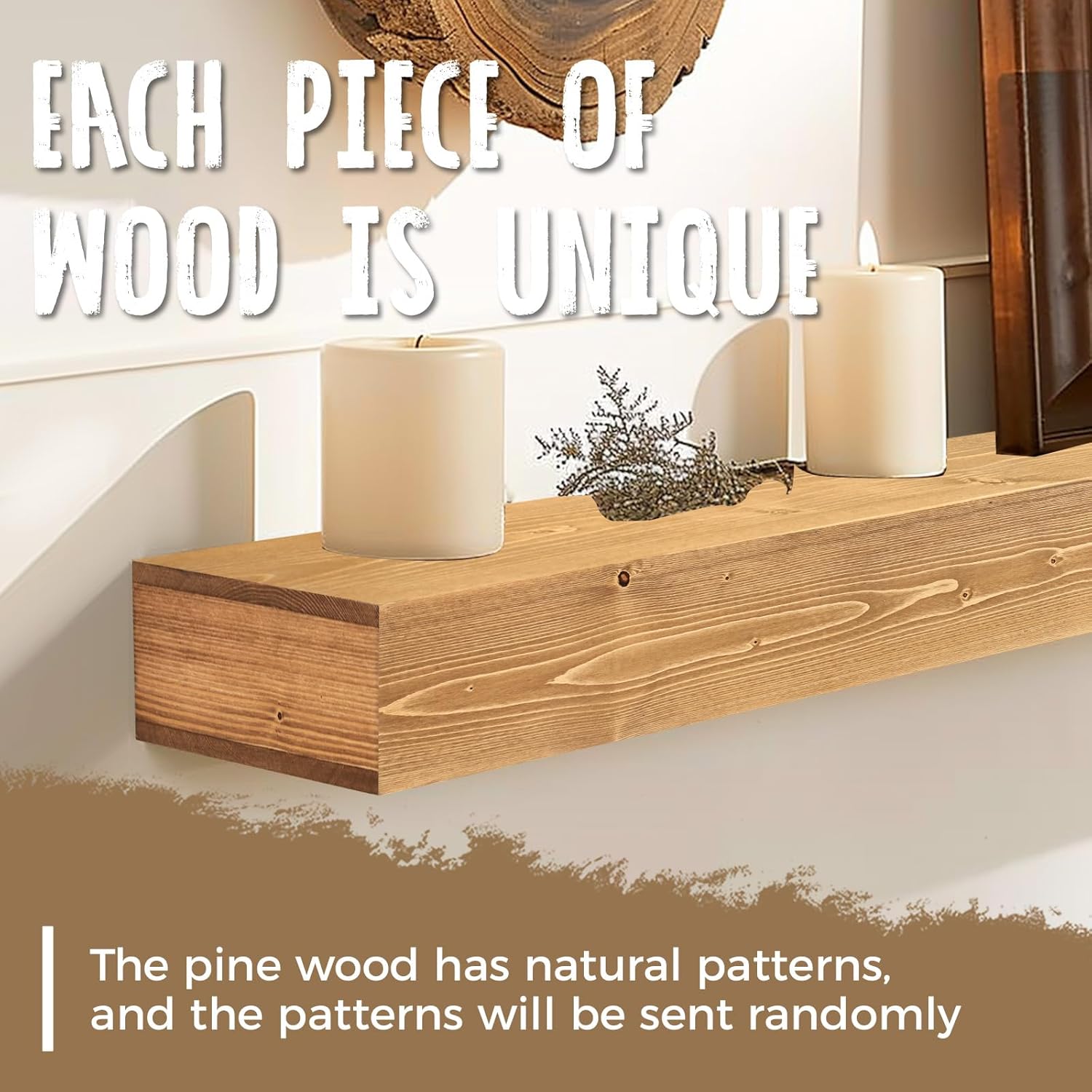 60x8x3 Fireplace Mantel - Handcrafted Hollow Rustic Solid Wood Wall Mounted Floating Shelf with Invisible Heavy Duty Wood Bracket (Natural Wood)