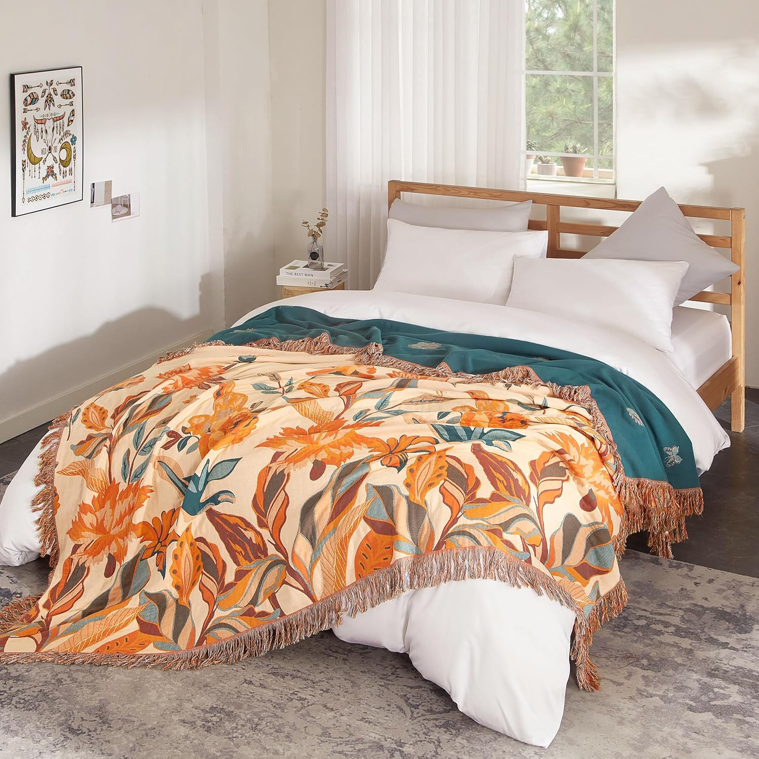 - Boho Chic Versatility: Experience the versatility of our boho-style cotton throw blankets that seamlessly transform from bedspreads to chic sofa covers. Ideal for any setting, from the bedroom to the living room, these blankets add a touch of rustic elegance. Whether as a fall throw, couch blanket, travel blanket, bedspread, Cloverlet or light quilt, they effortlessly combine warmth with style.