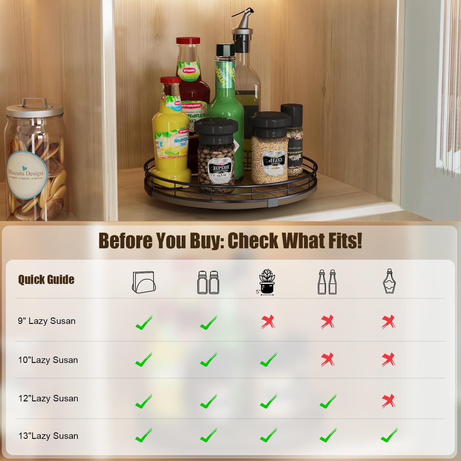 - 360°Smooth Rotation - The lazy susan turntable rotates smoothly and silently, placed next to the stove for easy access to condiments, spices, olive oil and cooking supplies. Placed next to the sink to display soap lotion. Thoughtful kitchen countertop organizers to rid your life of clutter!