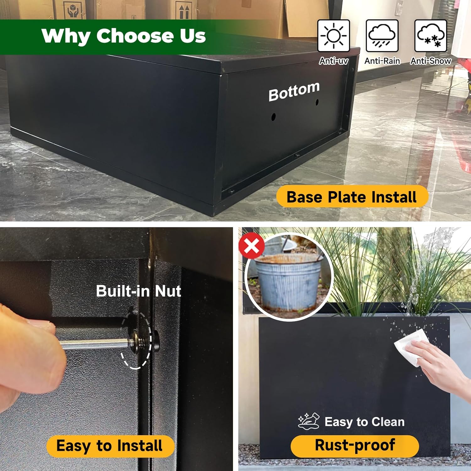 Galvanized Steel Metallic Heavy Planter for Outdoor Plants Metal Outdoor Planter Spliced Flower Box with Partitions for Outside,Indoor,Garden (Black, 24 * 10 * 24)