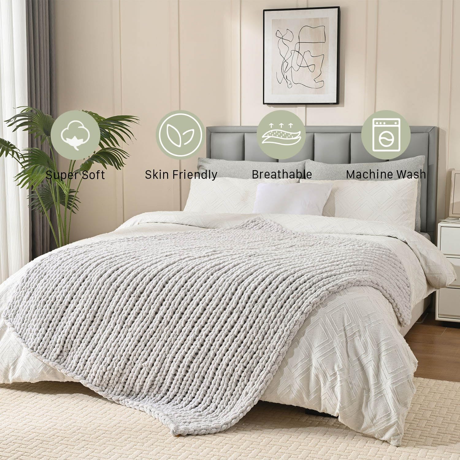 Esterra Chunky Knit Blanket Throw 60"x80", 100% Hand Knitted Chenille Throw Blanket, Cozy Soft Thick Cable Knit Throw Large Rope Knot Crochet Throw Blanket for Sofa Couch Bed, Light Gray