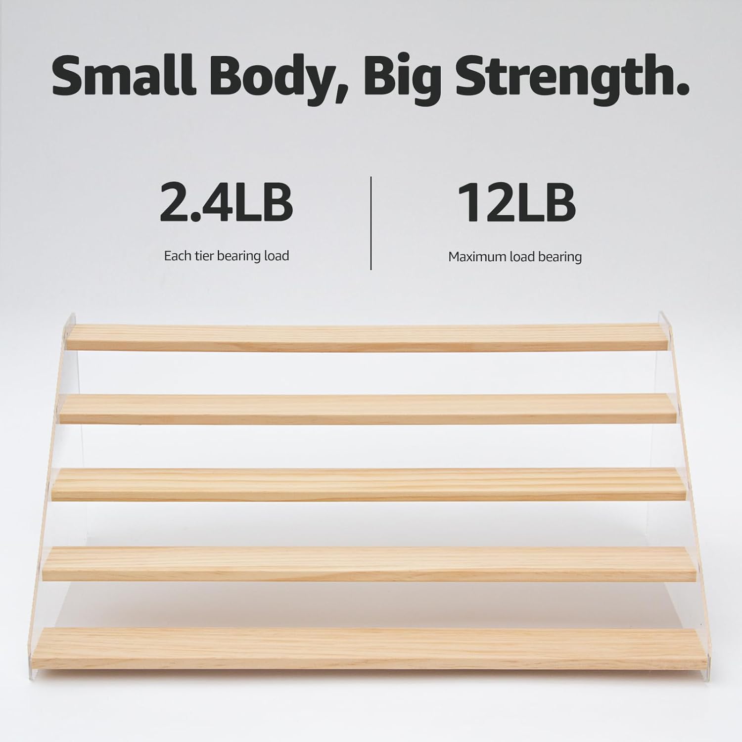 - Elegant & Sturdy: Risers display stands constructed from high-quality pine wood and corrugated acrylic, making it both aesthetically pleasing and fashionable, as well as durable and resistant to deformation, the spice shelf is a beautiful and robust addition to any space