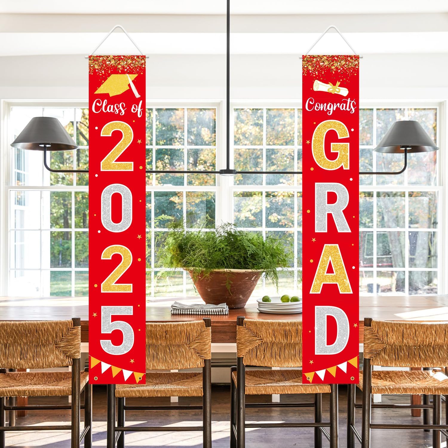 - Graduation Decorations Banner: Easy but festive graduation decorations. Pre-assembled to decorate front door, porch, fireplace, garage, patio, home, office, indoor and outdoor easily.